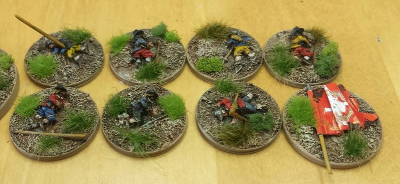 Pour LM Tercios, les 18 bataillons d’infanterie sont classic squadron modernised, musket only. Il est possible de passer les bataillons d’infanterie en large squadron afin de simuler la différence de taille moyenne entre bataillons bavaro-impériaux et franco-hessois mais cela risque de déséquilibrer la partie, l’infanterie de Mercy étant déjà bien retranchée. L’infanterie bavaroise est ainsi covered et protected et l’artillerie est fortified.