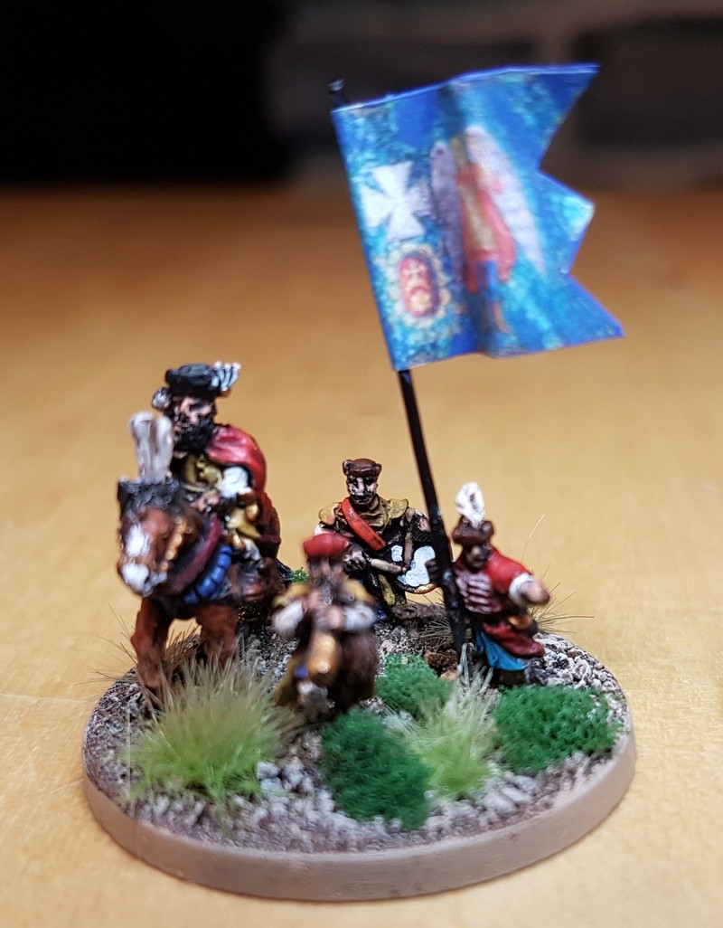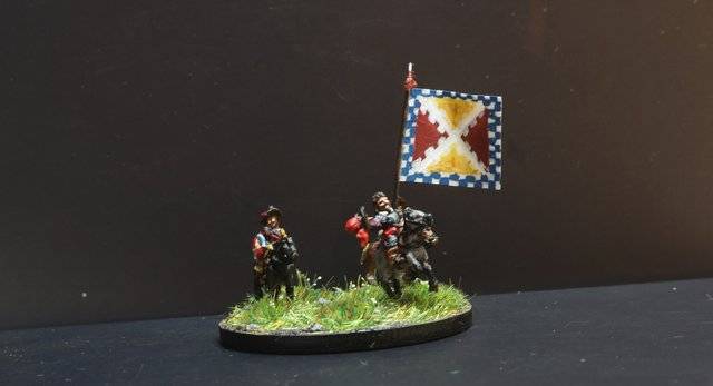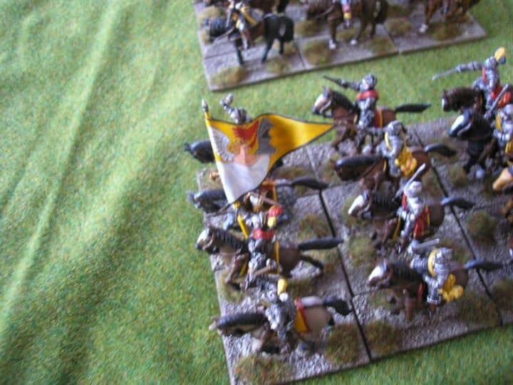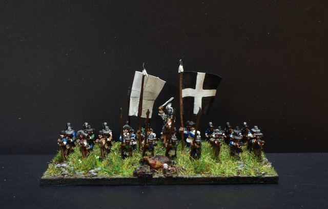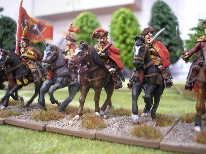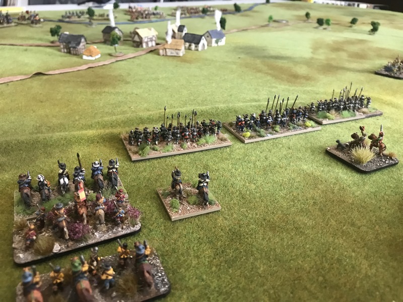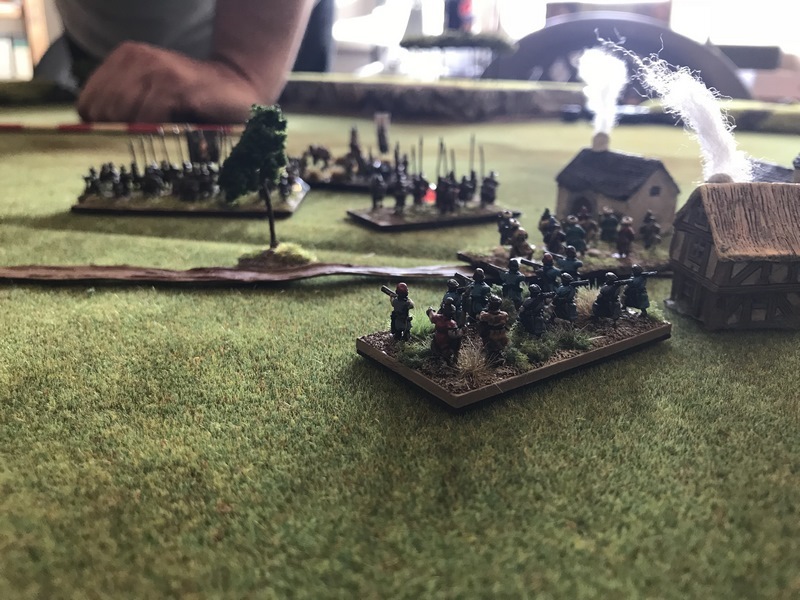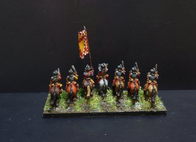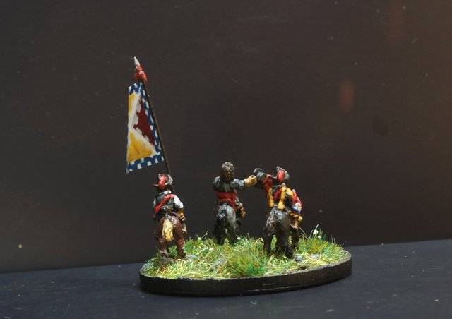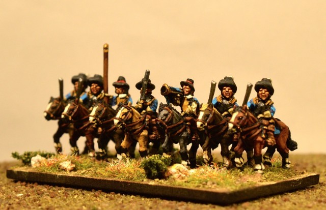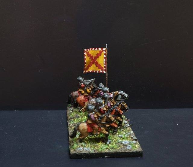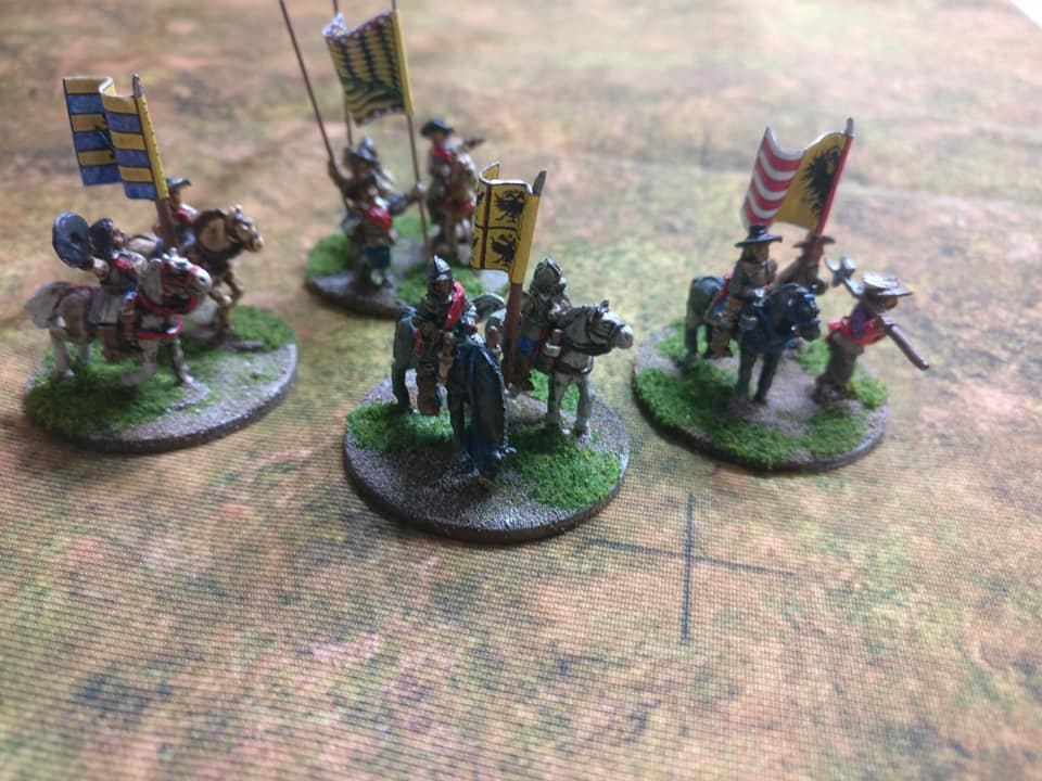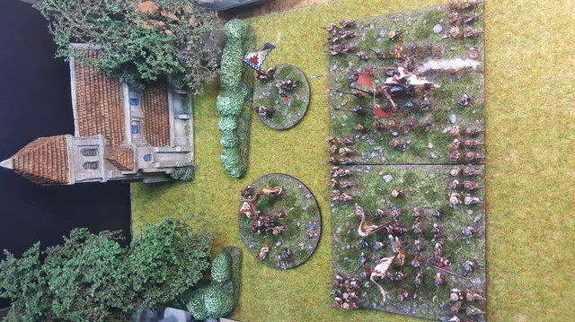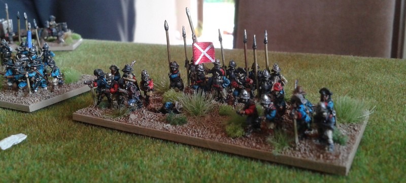 3ème ligne : un escadron d’arquebusiers à cheval de Goschütz et un escadron d’arquebusiers à cheval de Westrumb encadrant un petit bataillon d’infanterie (compagnies de mousquetaires).