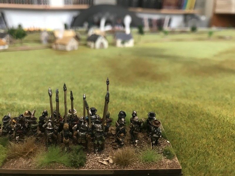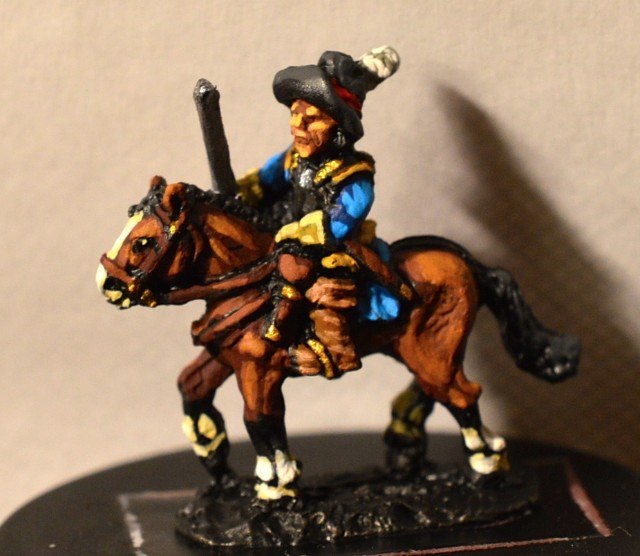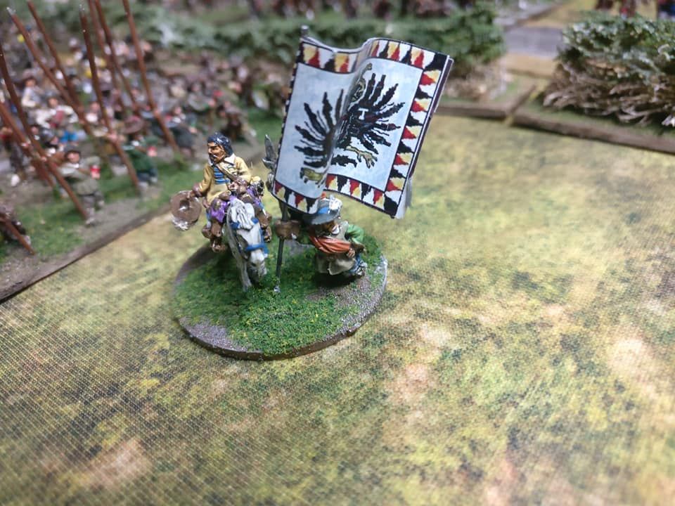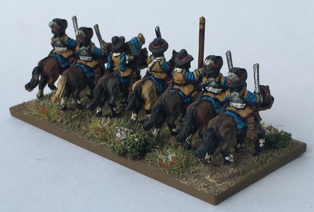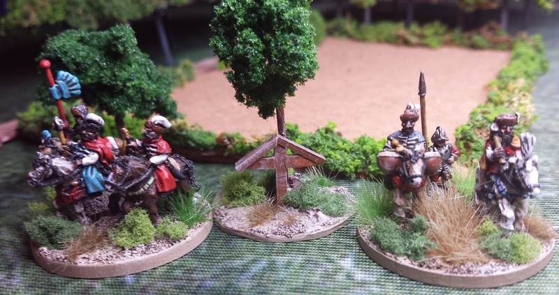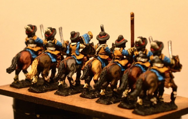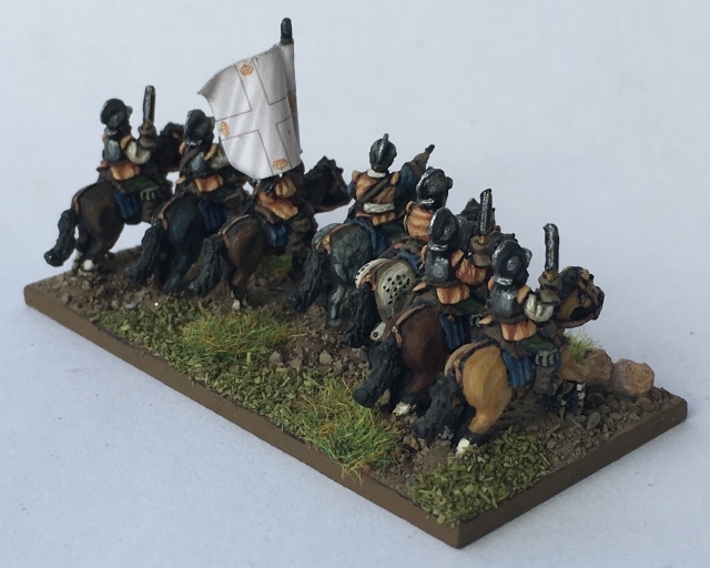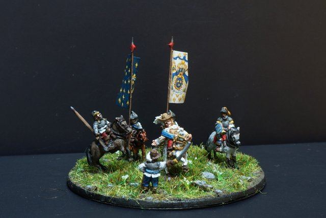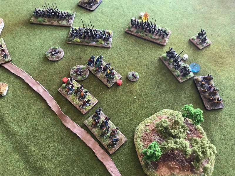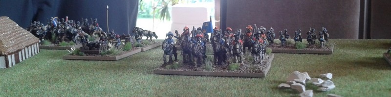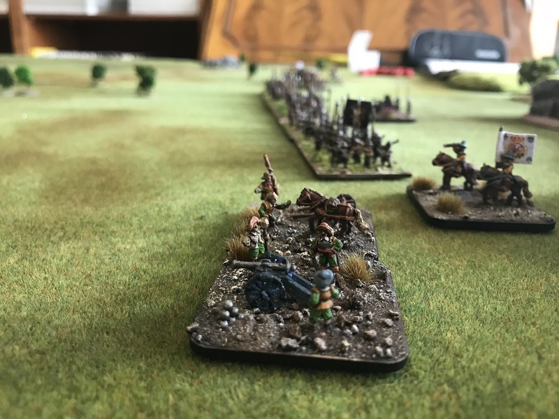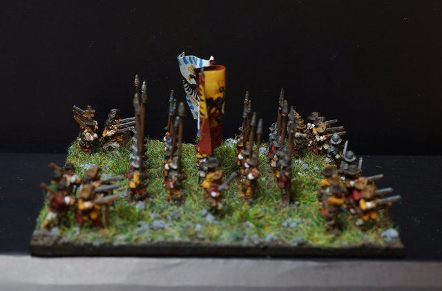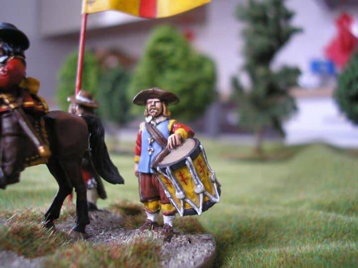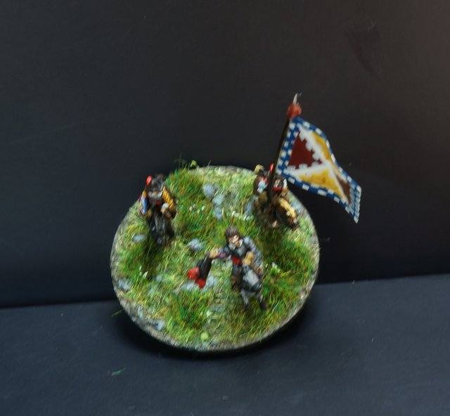 3ème ligne : un escadron d’arquebusiers à cheval de Goschütz et un escadron d’arquebusiers à cheval de Westrumb encadrant un petit bataillon d’infanterie (compagnies de mousquetaires).