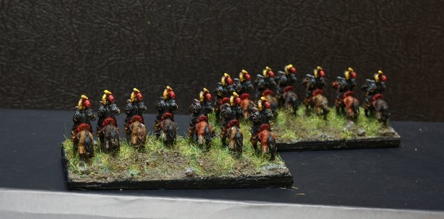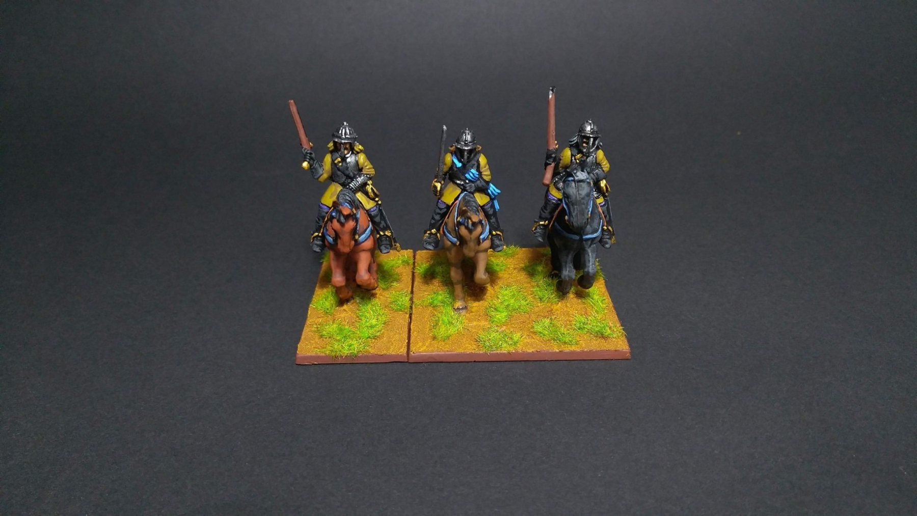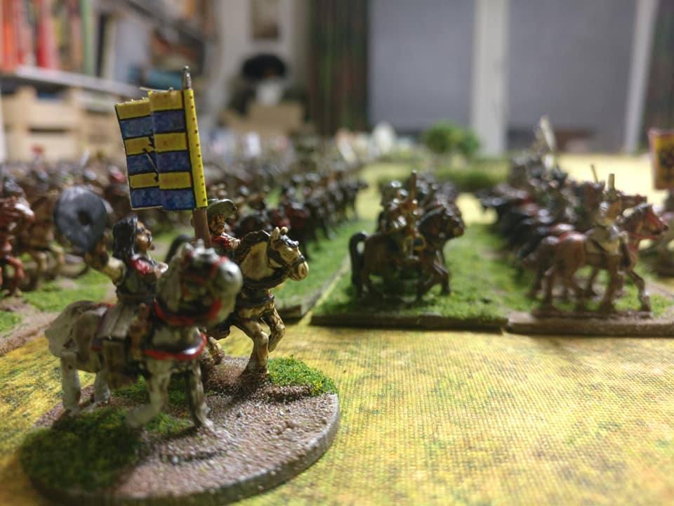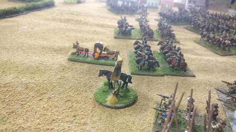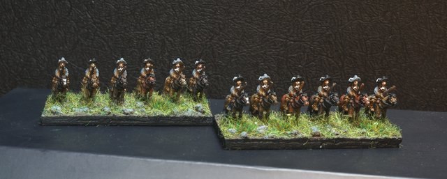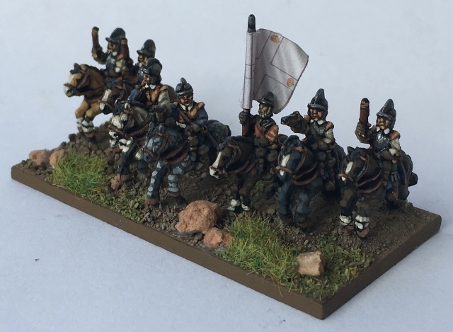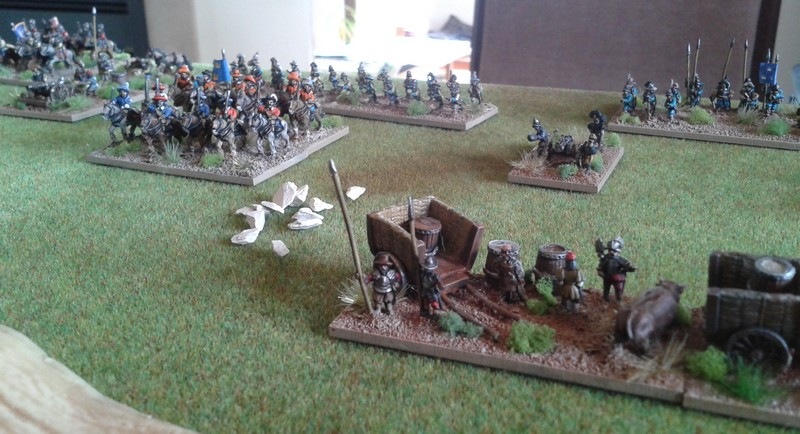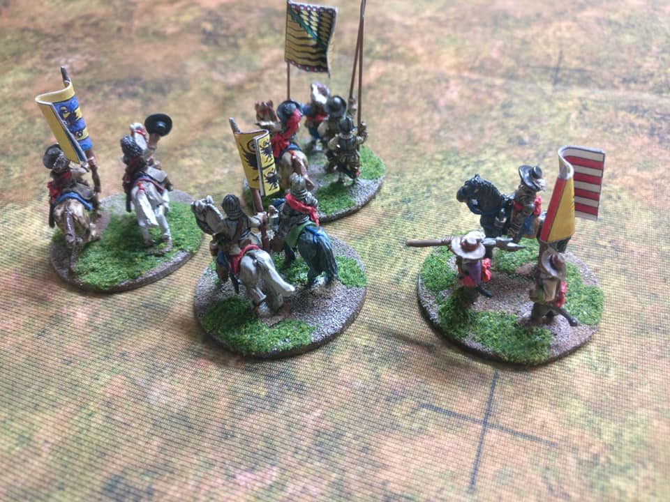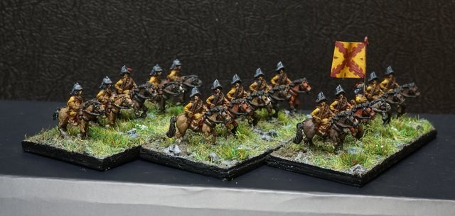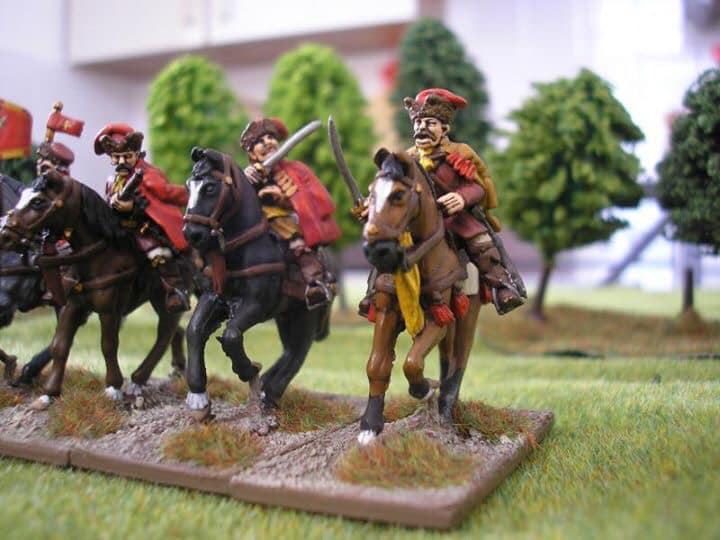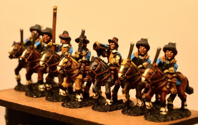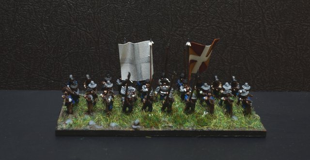 3ème ligne : un escadron d’arquebusiers à cheval de Goschütz et un escadron d’arquebusiers à cheval de Westrumb encadrant un petit bataillon d’infanterie (compagnies de mousquetaires).