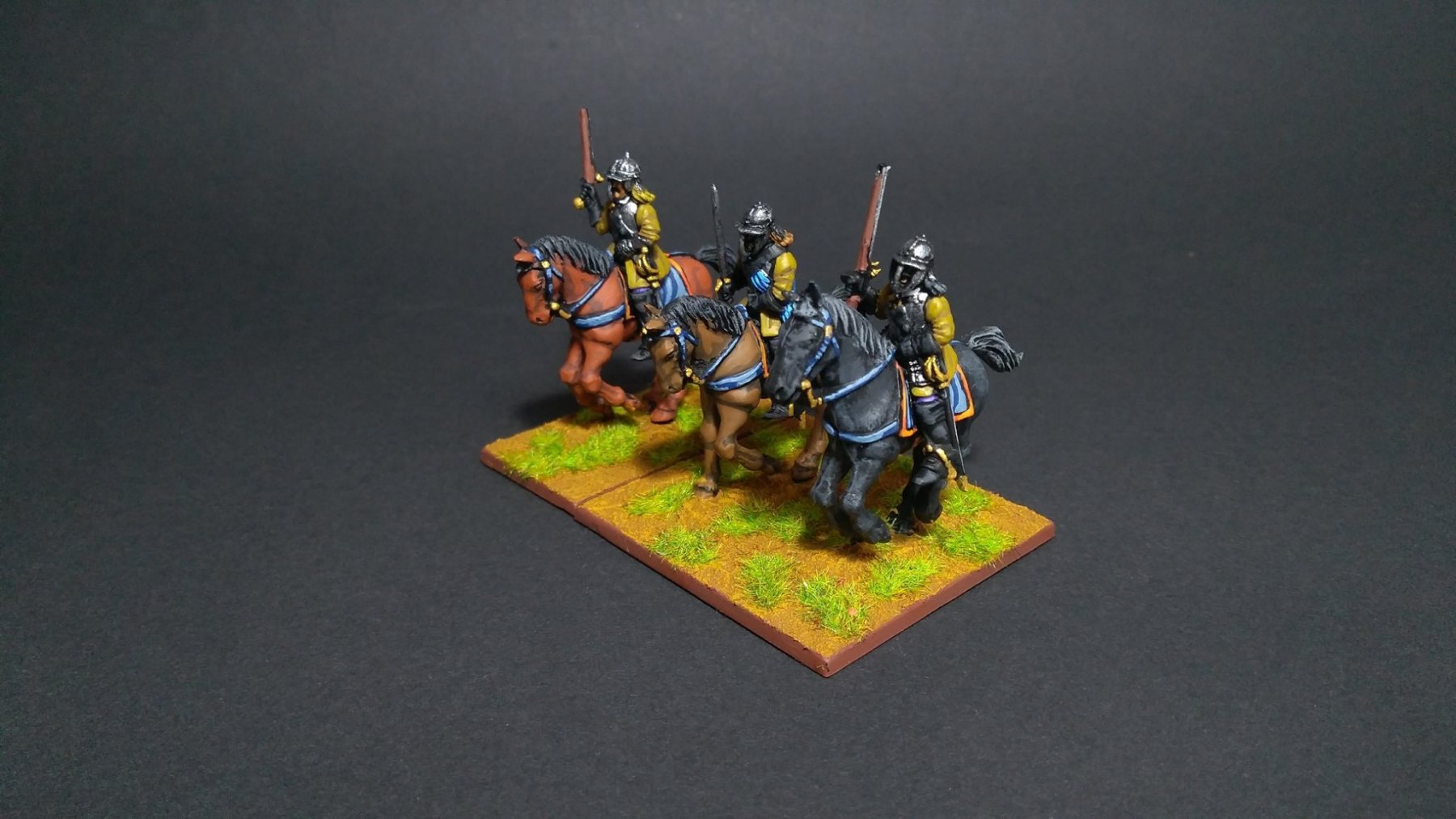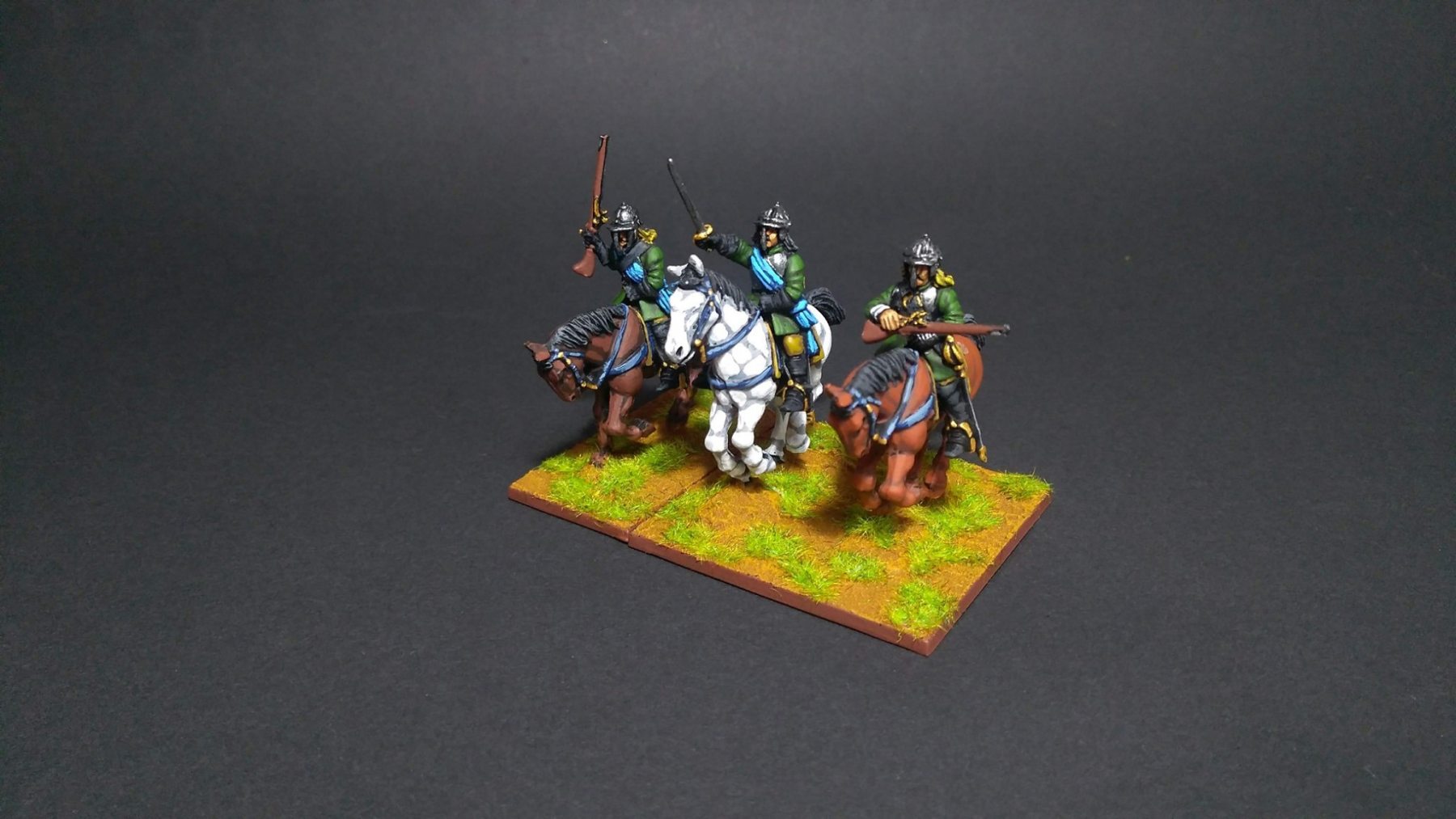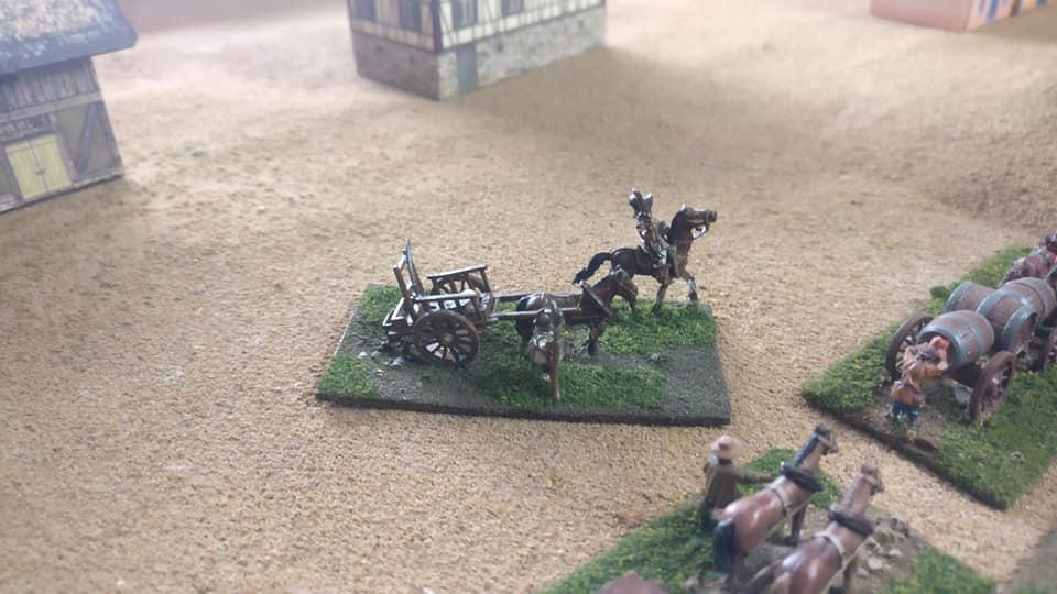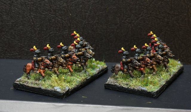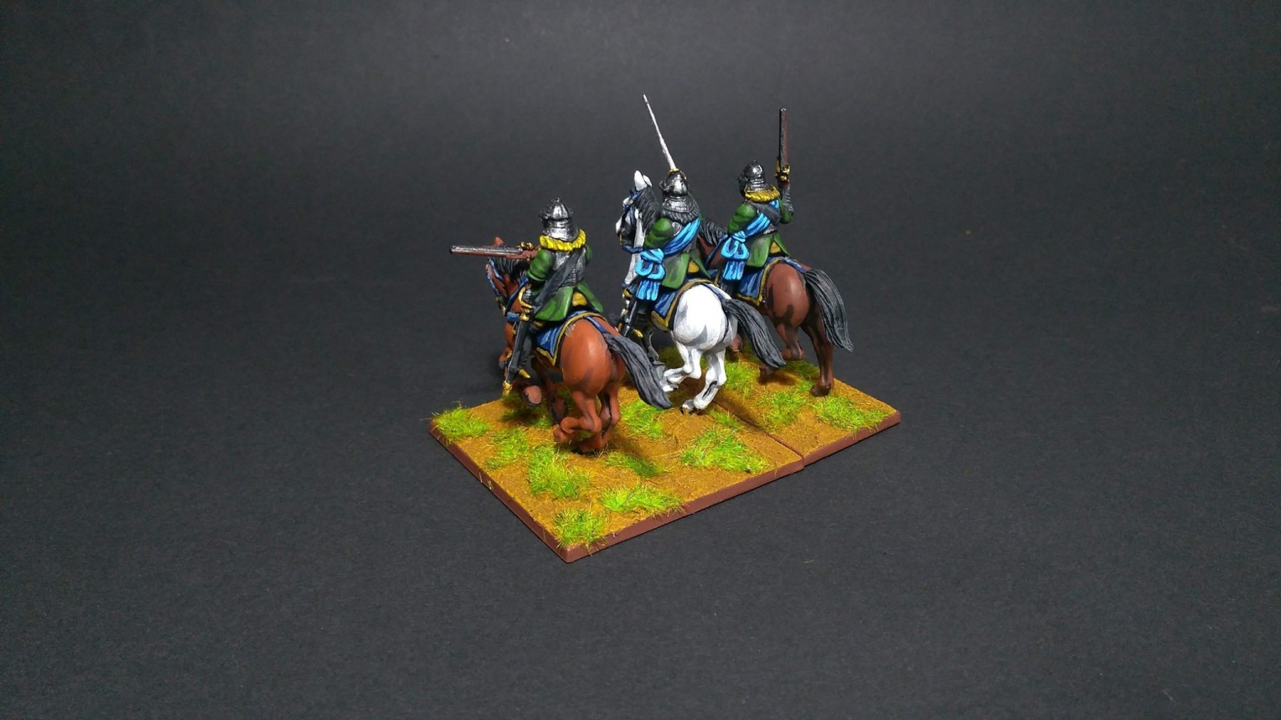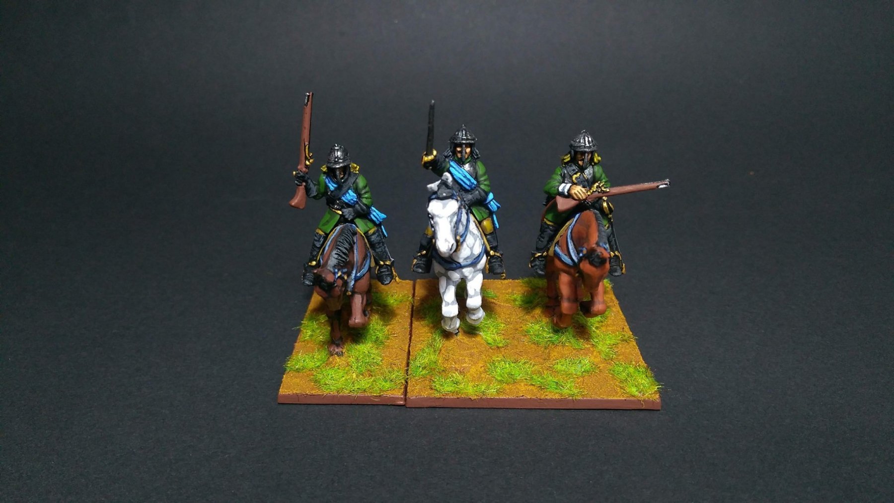 3ème ligne : un escadron d’arquebusiers à cheval de Goschütz et un escadron d’arquebusiers à cheval de Westrumb encadrant un petit bataillon d’infanterie (compagnies de mousquetaires).
