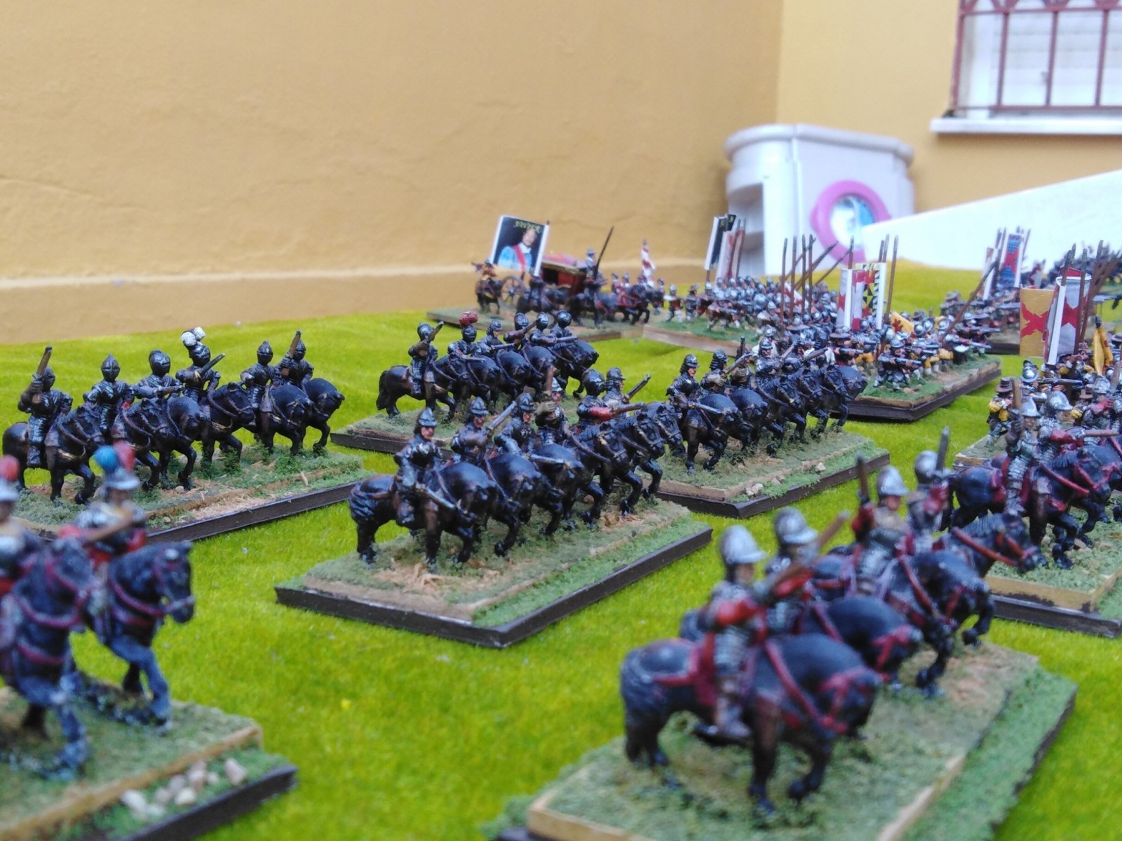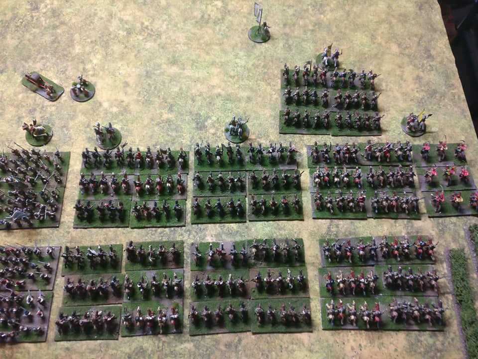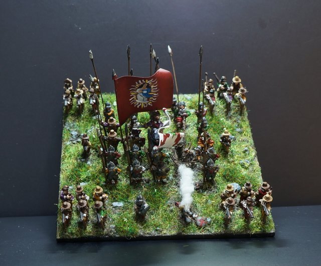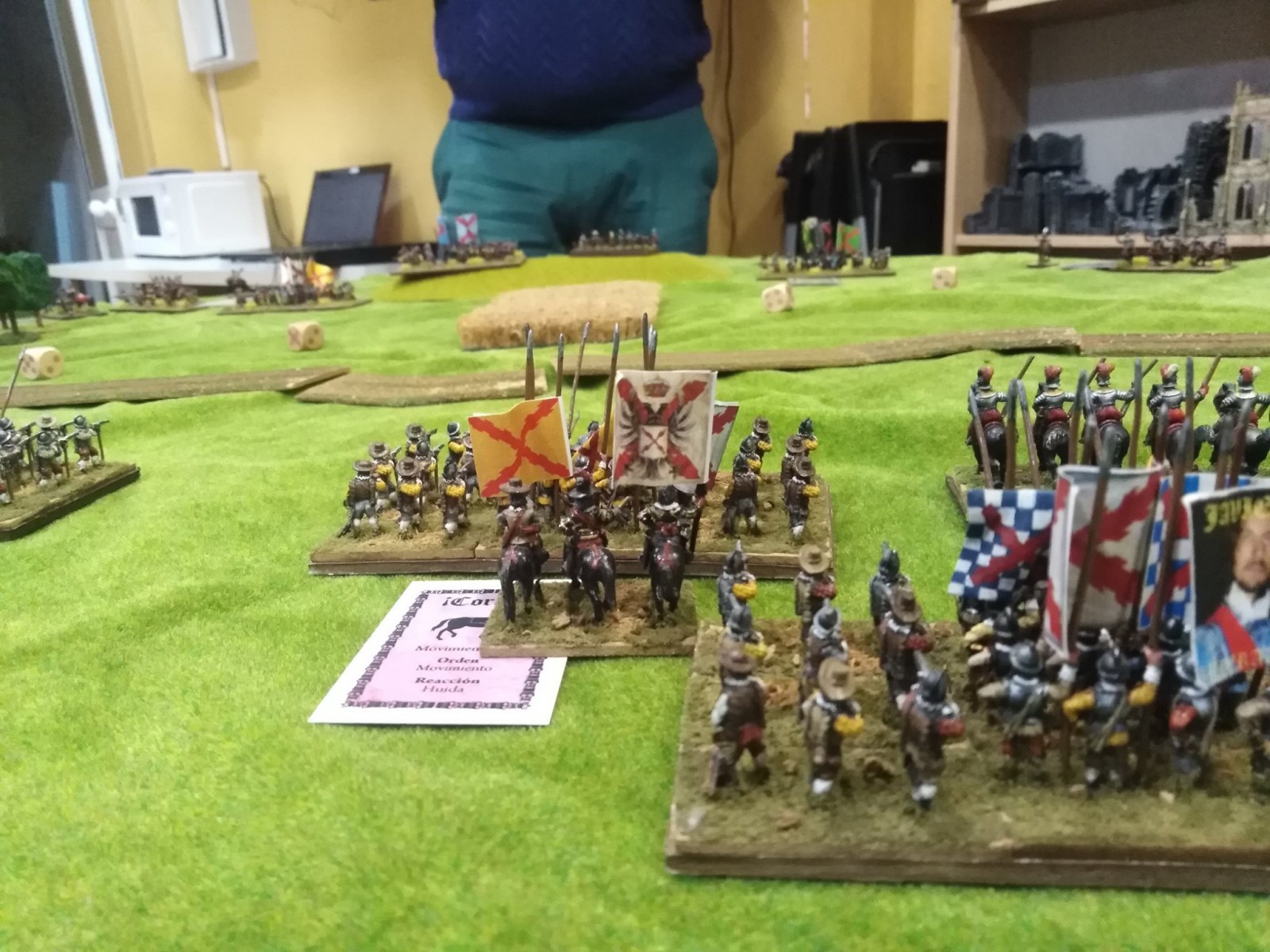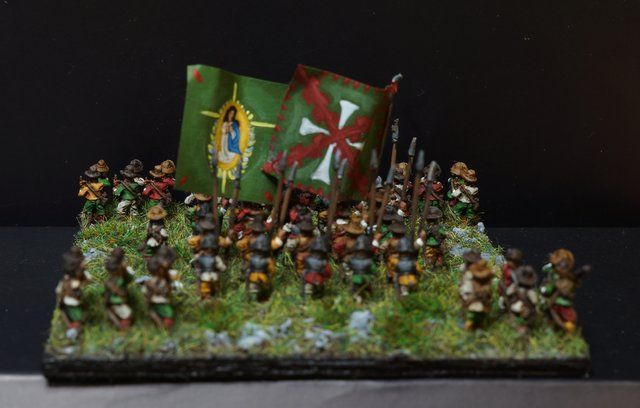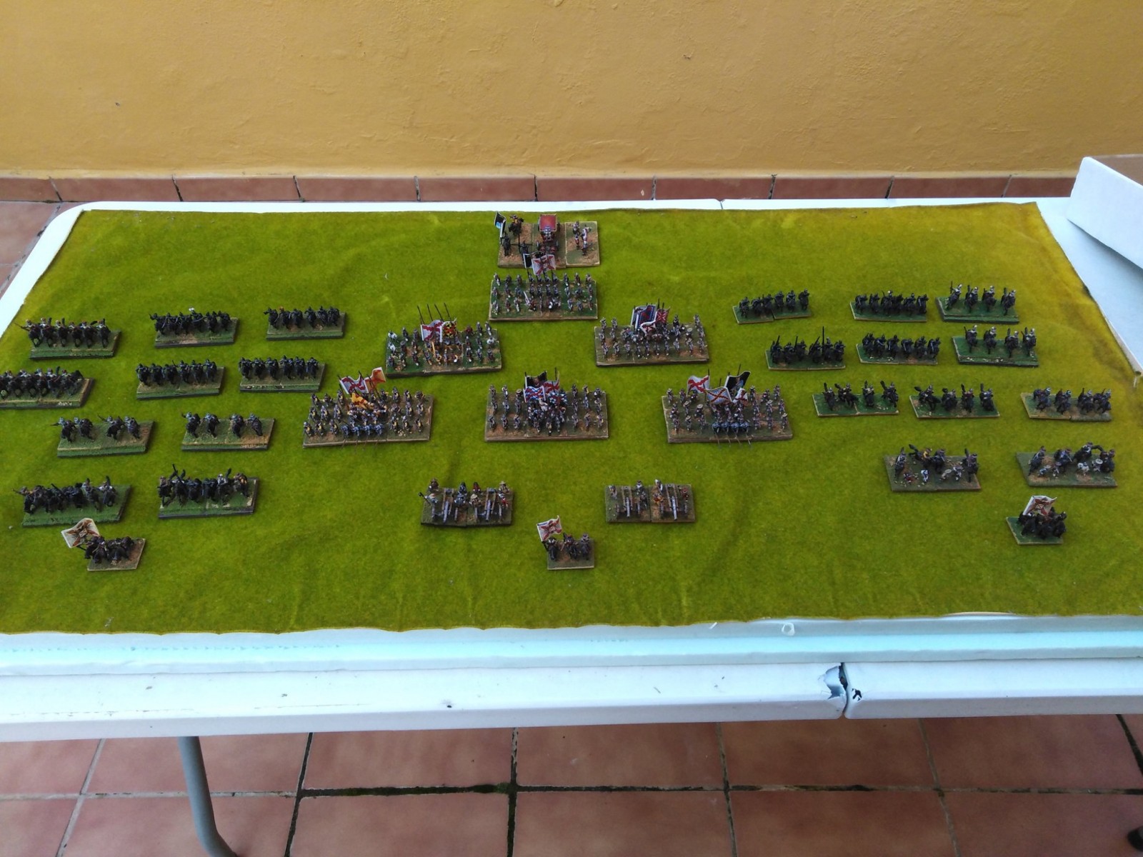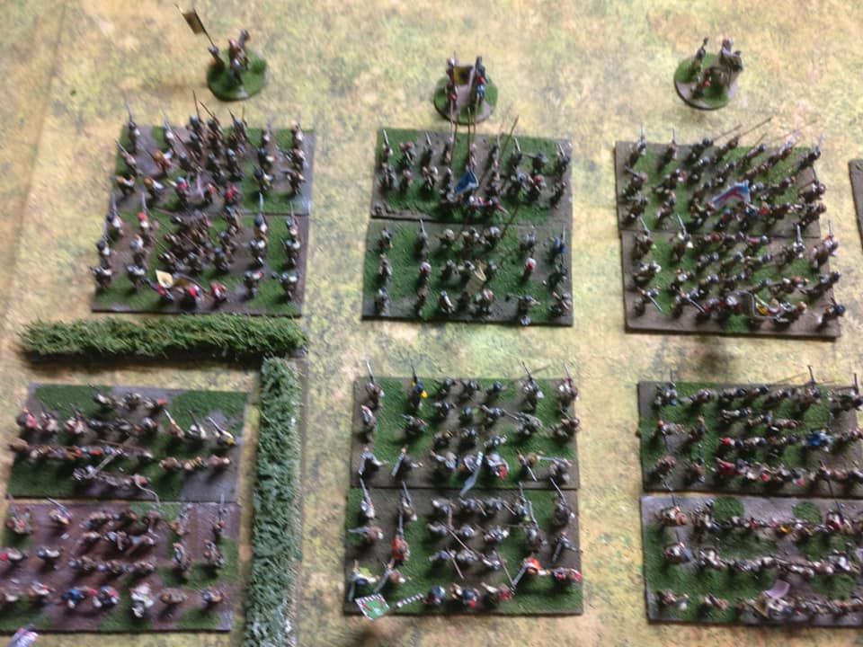 Pour LM Tercios : les bataillons d’infanterie impériaux sont à 1000 hommes, sauf celui de troisième ligne qui est à 500 hommes, auxquels s’ajoutent et 17 escadrons de cavalerie à 310 chevaux chacun. Les 7 bataillons d’infanterie des deux premières lignes sont classic squadron modernised musket only. Le bataillon de dernière ligne, constitué de compagnies de mousquetaires, est shot company musketeers. De plus, deux des bataillons de première ligne ont un regimental gun. Les 2 autres compagnies de mousquetaires (une sur chaque aile sont shot company musketeers). La compagnie de l’aile droite inclue les quelques dragons de Trcka (100h). Les 6 escadrons de cuirassiers sont cuirassiers large formation, les 7 escadrons d’arquebusiers à cheval sont mounted arquebusiers large formation avec pistol, les 4 escadrons de croates sont light horse. L’artillerie se décompose en 2 canons lourds et 2 canon moyens.
