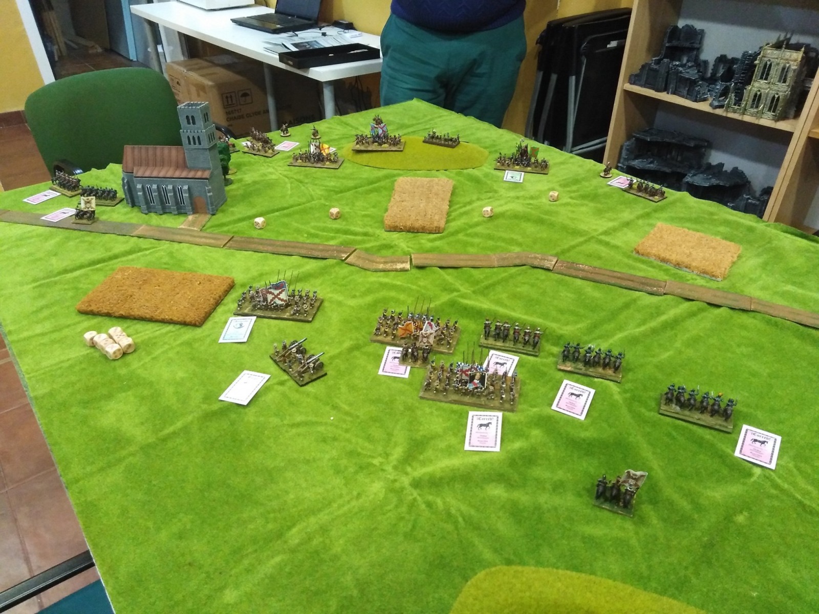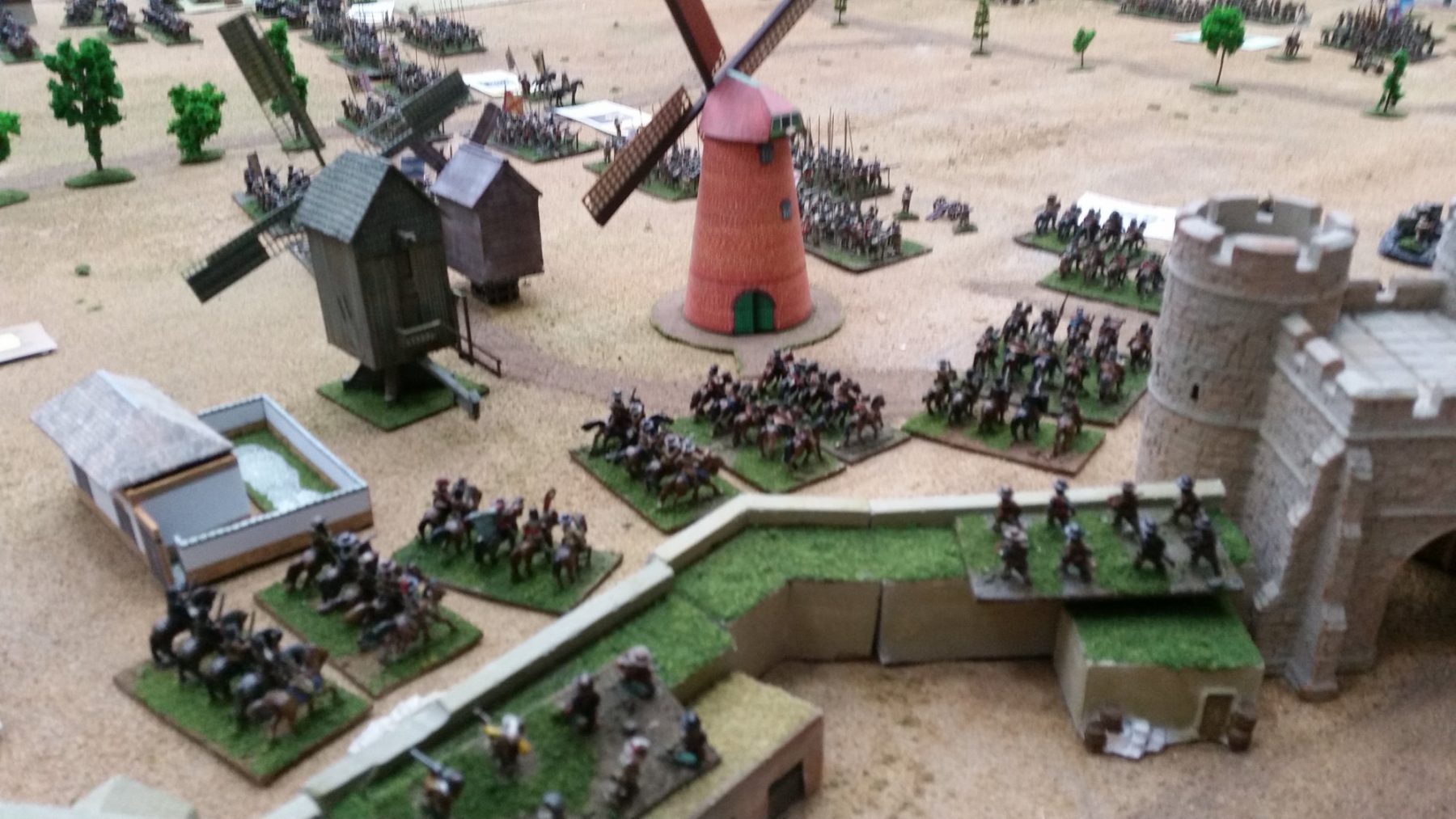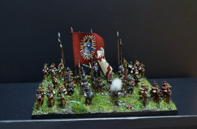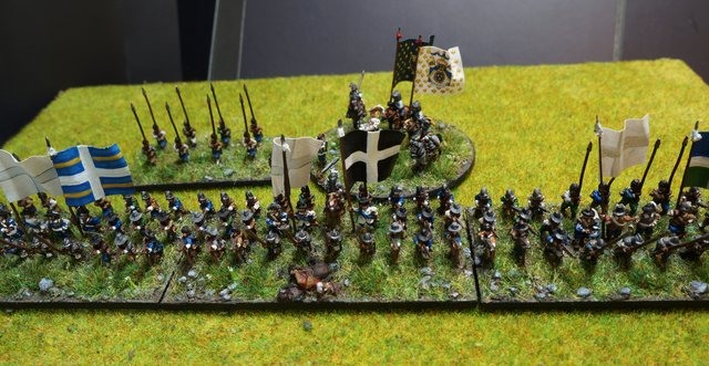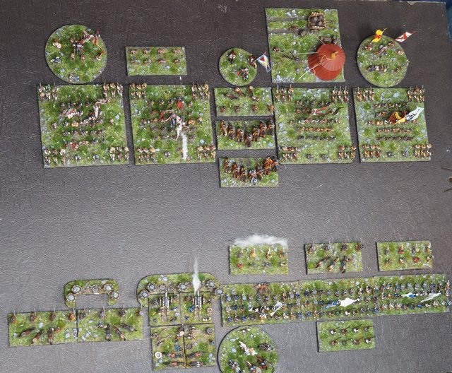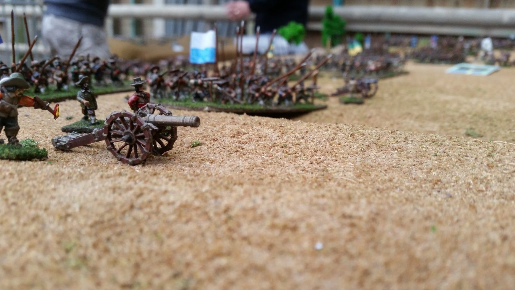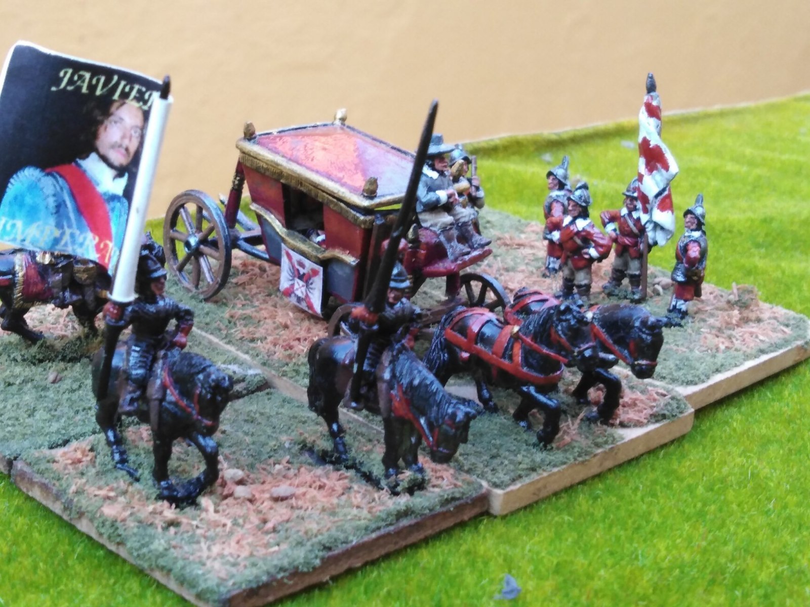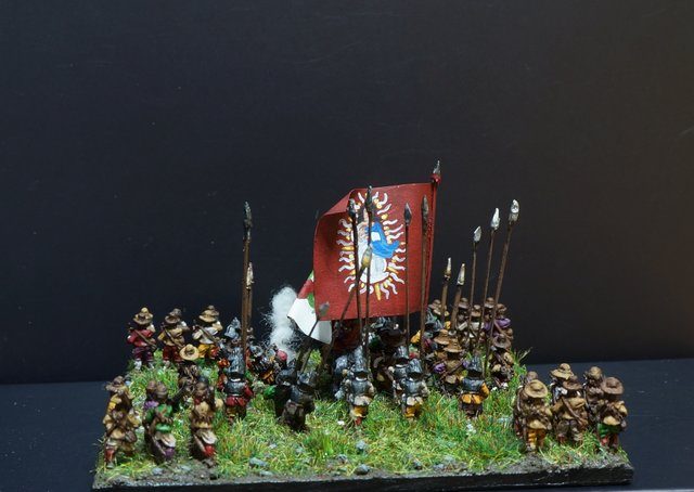 Pour LM Tercios : les bataillons d’infanterie impériaux sont à 1000 hommes, sauf celui de troisième ligne qui est à 500 hommes, auxquels s’ajoutent et 17 escadrons de cavalerie à 310 chevaux chacun. Les 7 bataillons d’infanterie des deux premières lignes sont classic squadron modernised musket only. Le bataillon de dernière ligne, constitué de compagnies de mousquetaires, est shot company musketeers. De plus, deux des bataillons de première ligne ont un regimental gun. Les 2 autres compagnies de mousquetaires (une sur chaque aile sont shot company musketeers). La compagnie de l’aile droite inclue les quelques dragons de Trcka (100h). Les 6 escadrons de cuirassiers sont cuirassiers large formation, les 7 escadrons d’arquebusiers à cheval sont mounted arquebusiers large formation avec pistol, les 4 escadrons de croates sont light horse. L’artillerie se décompose en 2 canons lourds et 2 canon moyens.