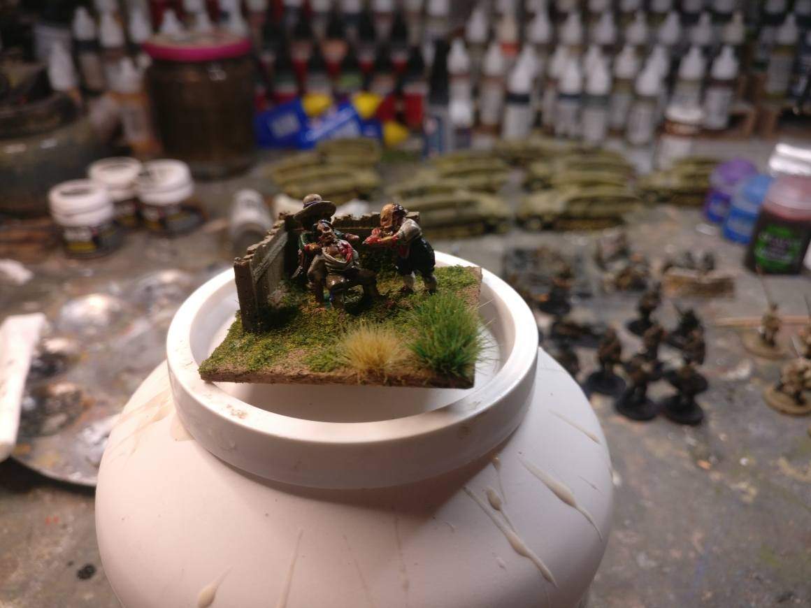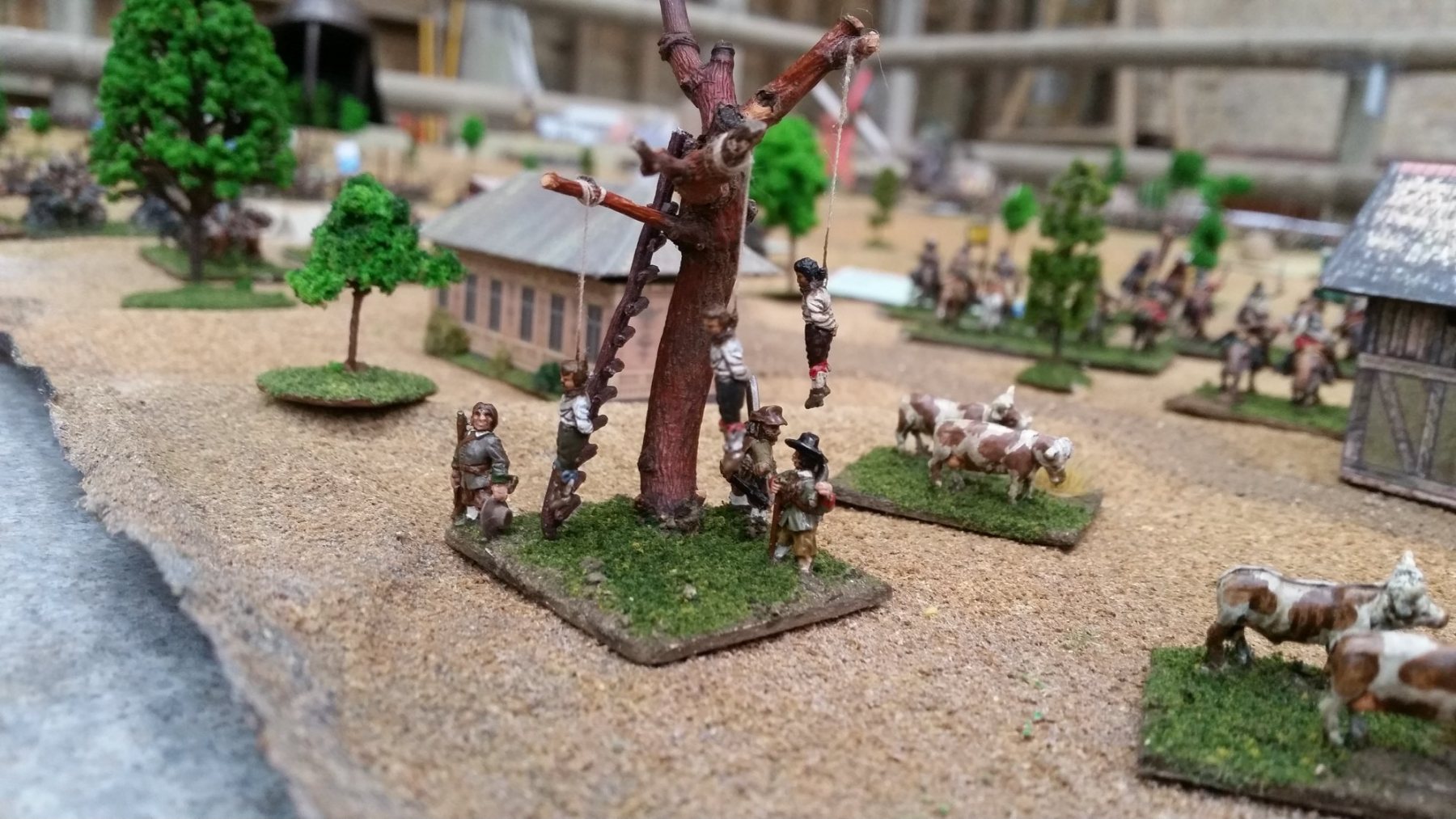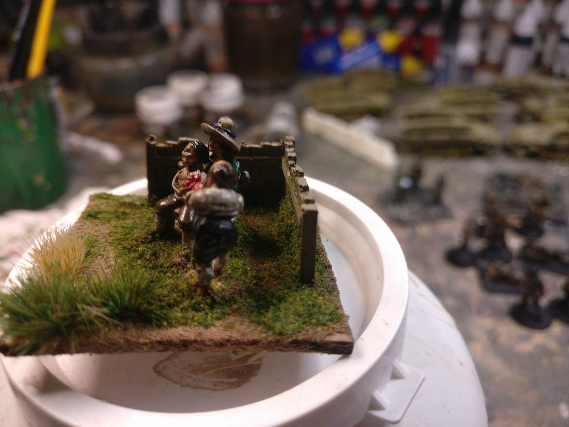 Les impériaux sont protégés par un fossé : ce fossé est very difficult. De plus, les deux compagnies de mousquetaires (et uniquement elles) placées sur les ailes et derrière ce fossé sont considérées protected. La compagnie de mousquetaires placée à l’aile droite (dans Lützen et la maison du meunier au pied des 3 moulins) est en plus covered. Les bataillons d’infanterie et les escadrons de cavalerie, placés derrière, sont plus éloignés du fossé et ne profitent donc pas de ces couvertures.