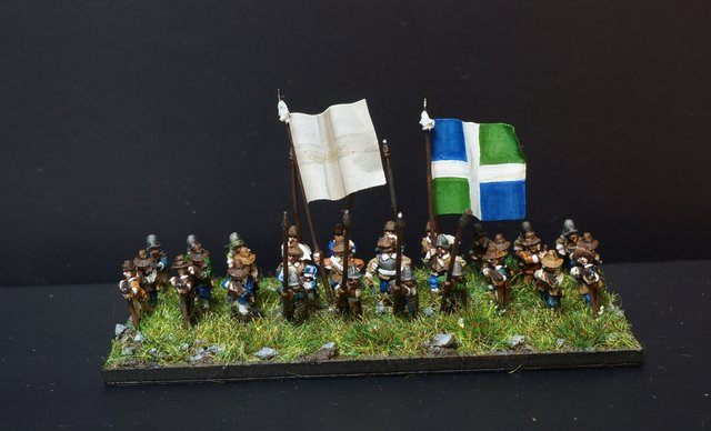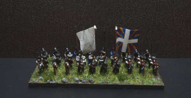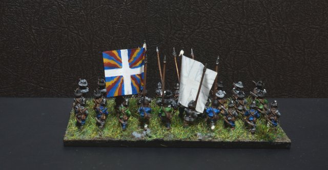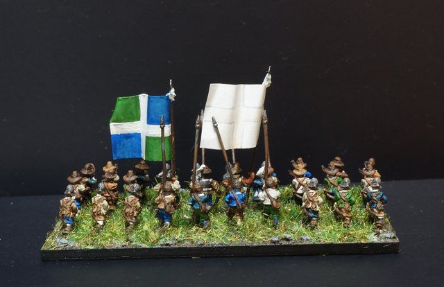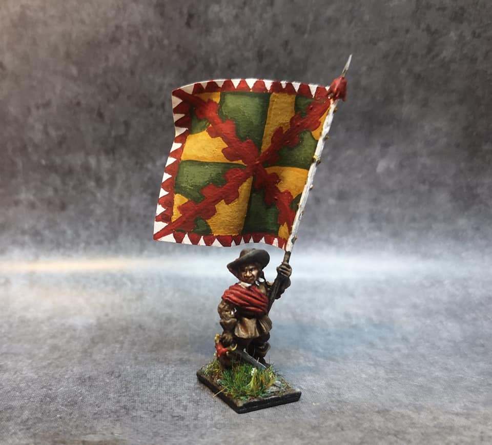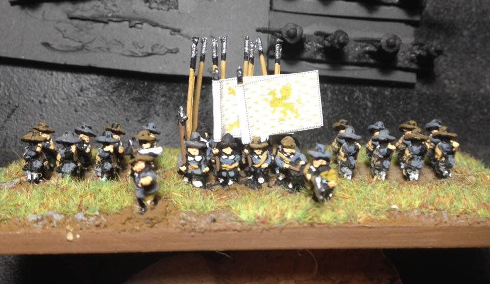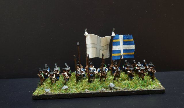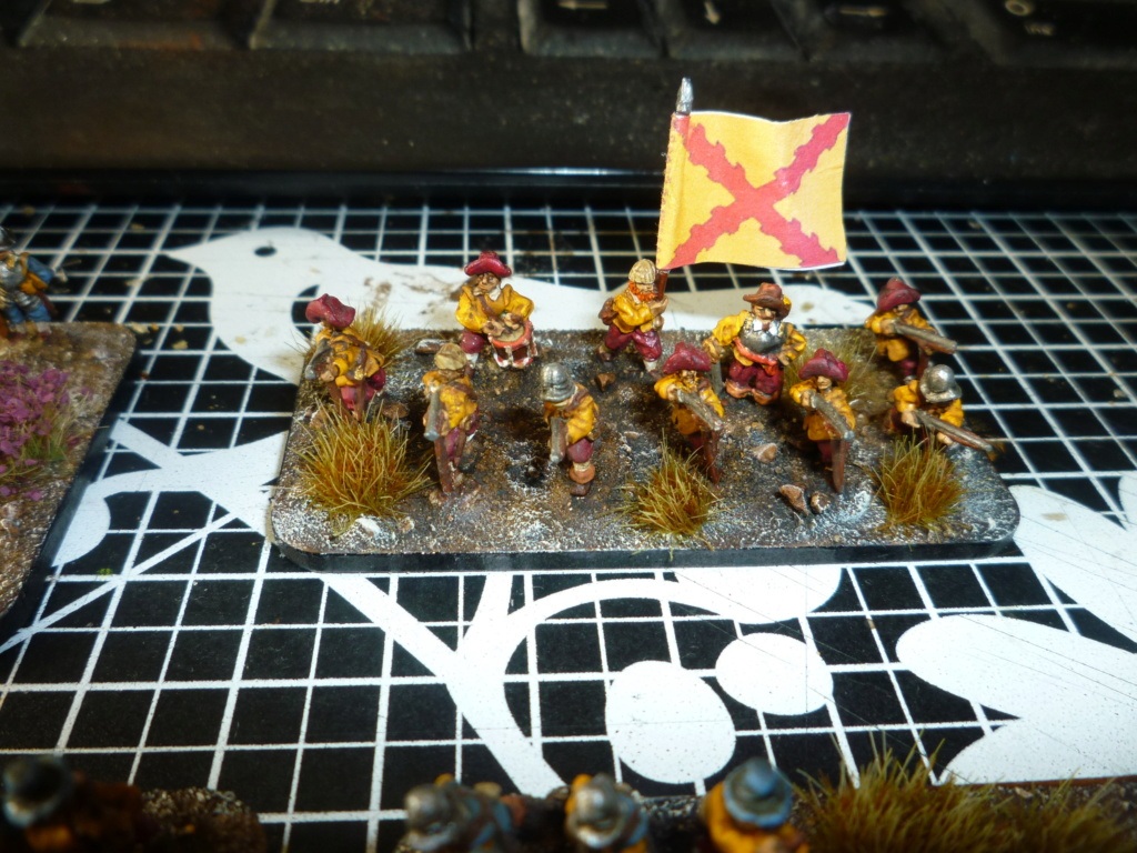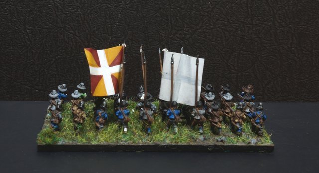 La brigade blanche : elle était constituée uniquement du régiment Knyphausen (dont je n’ai pas le drapeau), ce régiment étant formé en septembre 1632 en réunissant le régiment « vieux blanc » de Bürt et le régiment Mitschefall
