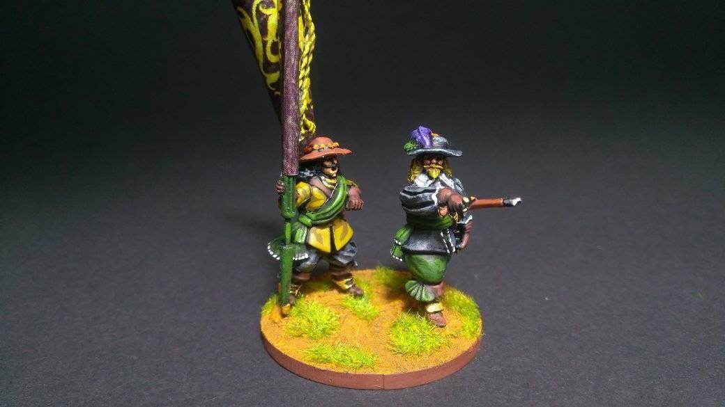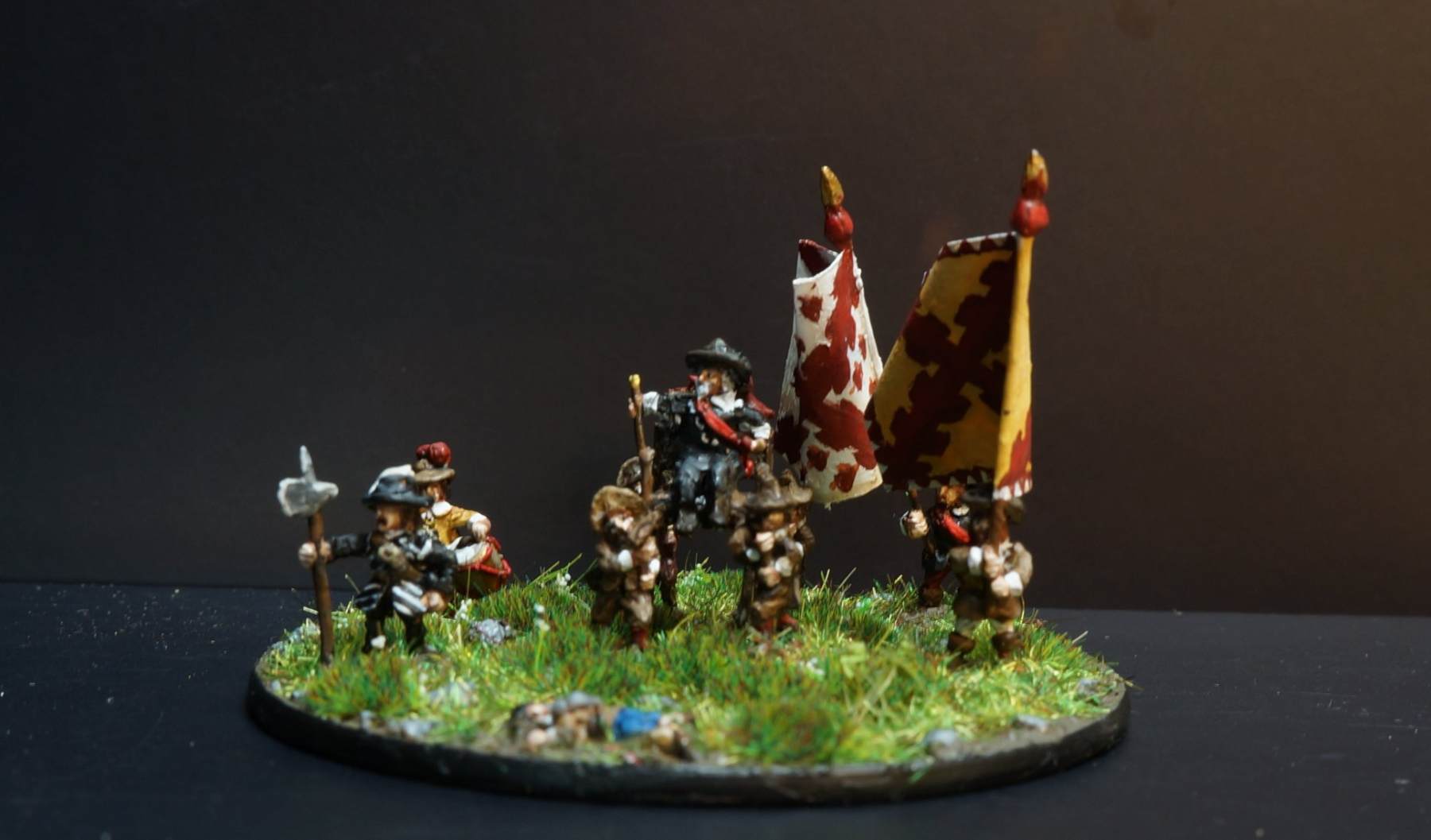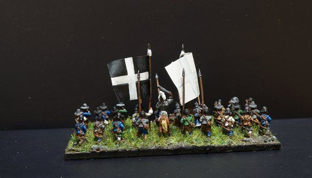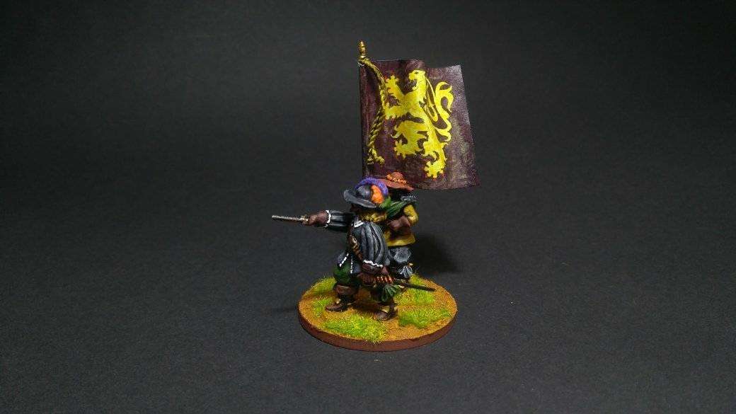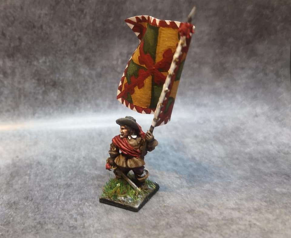 La brigade blanche : elle était constituée uniquement du régiment Knyphausen (dont je n’ai pas le drapeau), ce régiment étant formé en septembre 1632 en réunissant le régiment « vieux blanc » de Bürt et le régiment Mitschefall