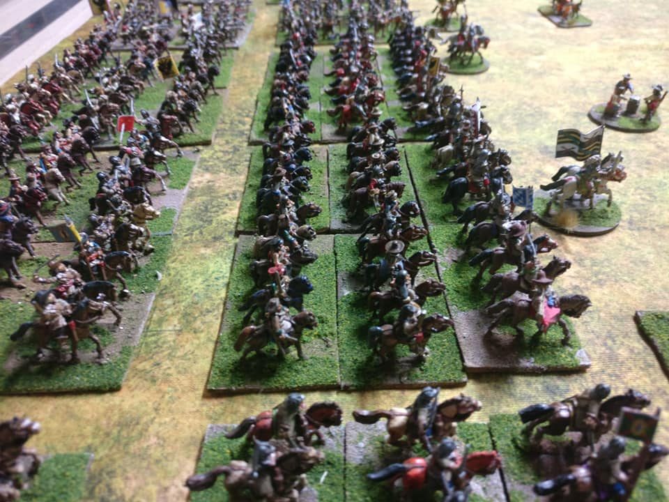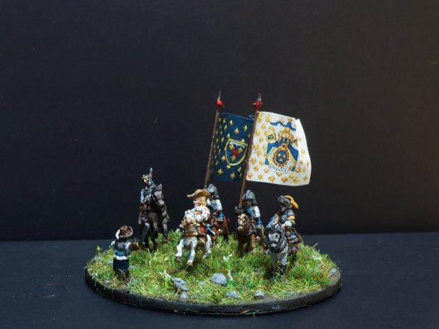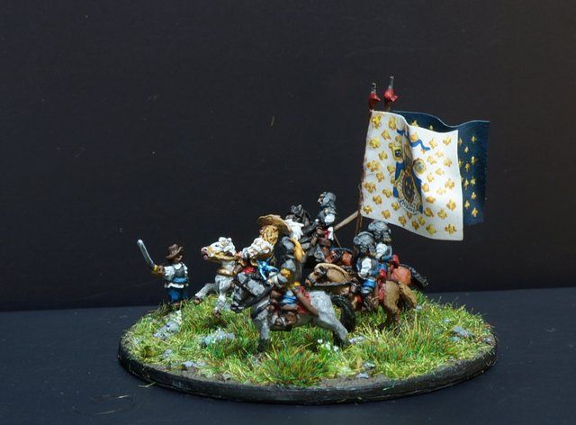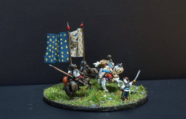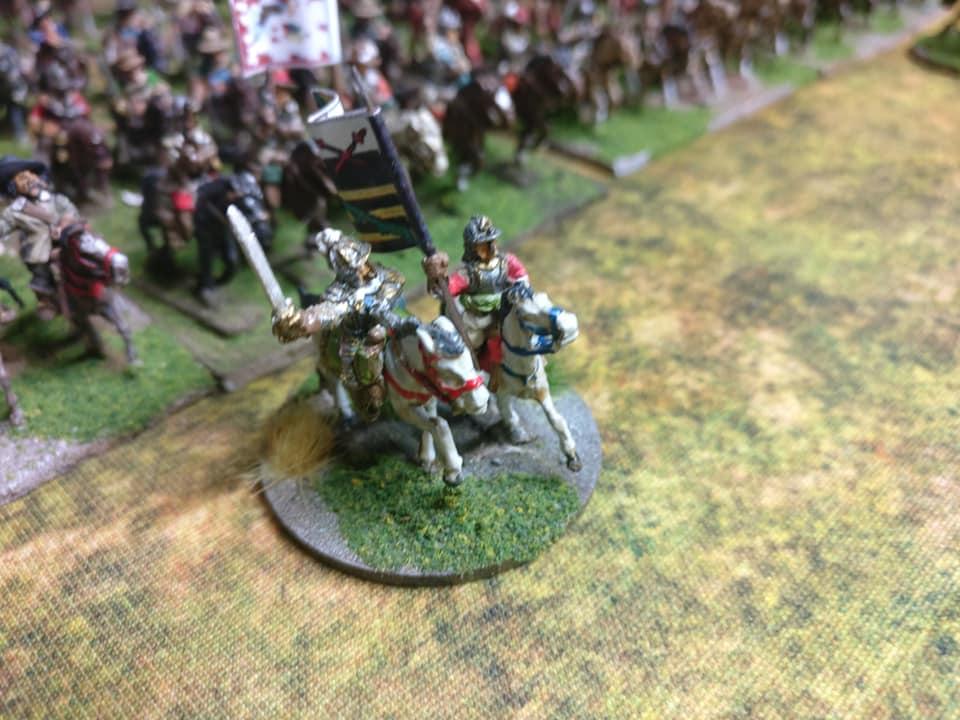 Seconde ligne : 5 escadrons, précédés de leurs colonels qui marchaient accompagnés de gentilshommes volontaires tous bien montés et bien armés.