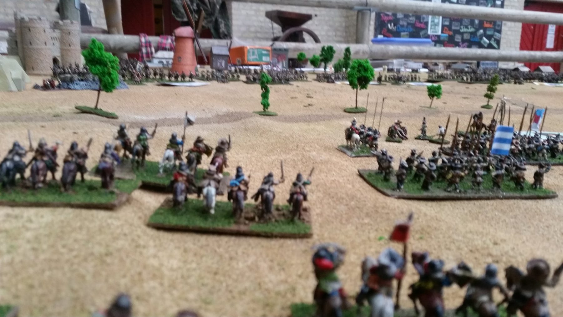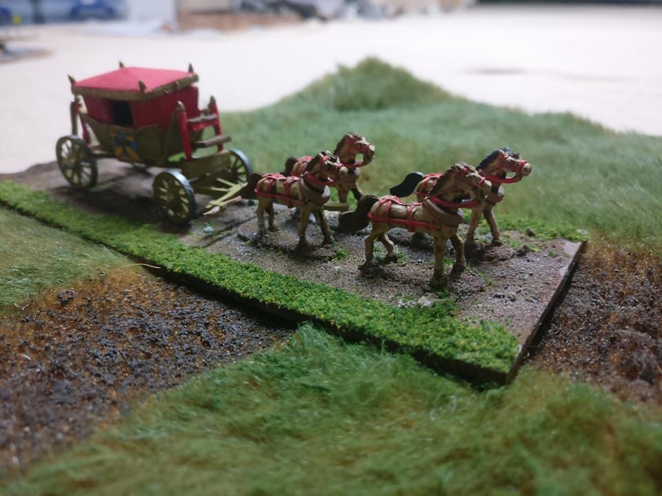 La bataille commence à 11 heures et se termine vers 17-18 heures à la nuit tombée. A Lützen, le soleil se couche vers 16h20 le 16 novembre. La partie se joue donc en 7 tours. La cavalerie de Pappenheim arrive à midi sur le champ de bataille, c’est à dire au tour 2. Les 3 bataillons d’infanterie du corps de Pappenheim arrivent au 6e tour sur un 4+ sur un dé 6 ou automatiquement au 7e tour de jeu. La visibilité se réduit à partir du tour 5 : elle est de 8 pouces au tour 5, de 4 pouces au tour 6 et 2 pouces au tour 7. Il n’est pas possible de tirer et charger au-delà de ces distances.