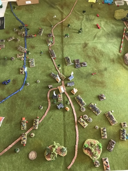 Deuxième ligne : Brigade Bose (1438), brigade Knyphausen (1120), brigade Thurn (1252), brigade Mitzlaff (1546), Ohm CR (300).