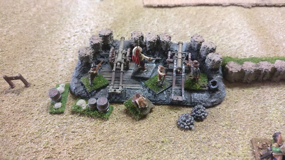Artillerie : 20 canons = 10 pièces de 3 livres sur chaque aile avec les mousquetaires commandés).