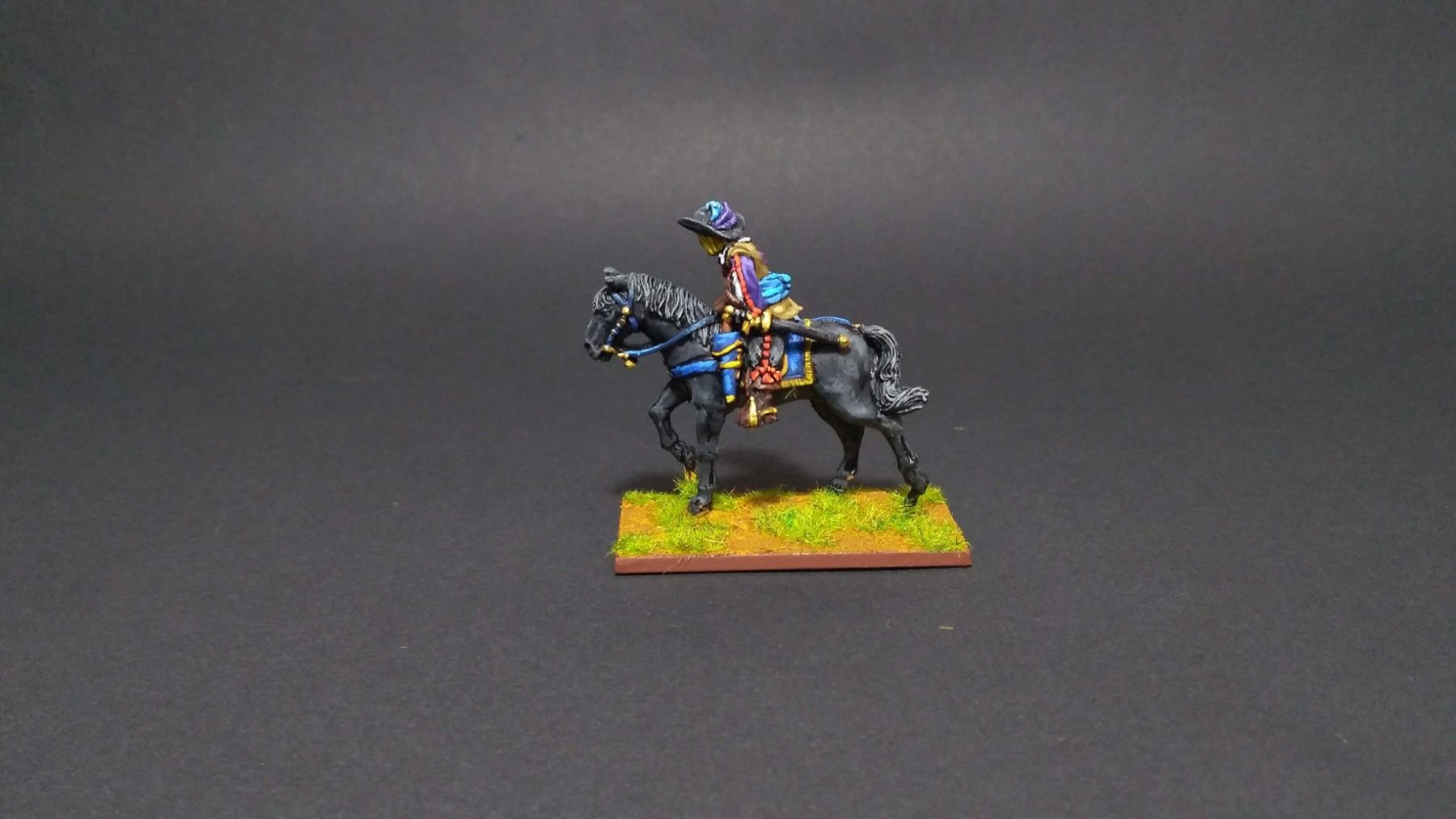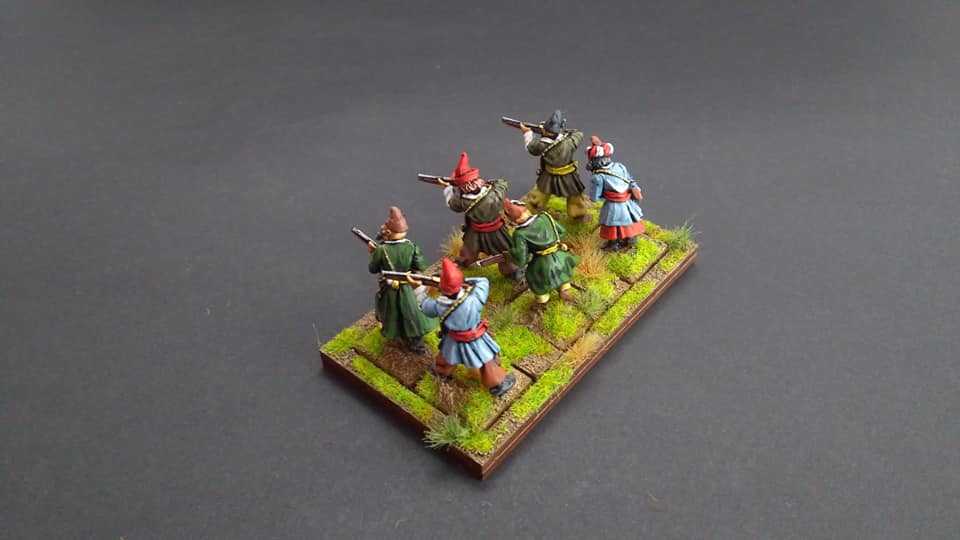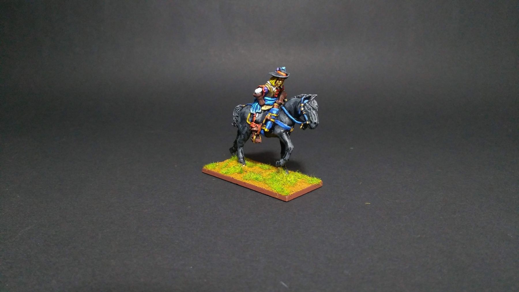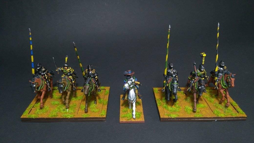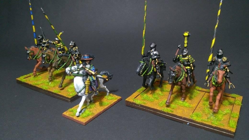 Pour LM Tercios, les brigades d’infanterie suédoise sont à 1 580 hommes et les escadrons de cavalerie à un peu moins de 250 chevaux. Les 8 brigades suédoises sont représentées chacune par un modern squadron reinforced, avec une stamina de 5 (et non 3 comme dans le livre de règles). Les brigades bleu suédoise et jaune étant veteran. Les 4 brigades de première ligne ont en plus la règle regimental gun. Les détachements de mousquetaires sont représentés par 4 compagnies (2 sur chaque aile) shot company musketeers brigade rule avec regimental gun. Les 25 escadrons de cavalerie (250 chevaux par escadron) sont cuirassiers modern cavalry, l’escadron de finnois (Stalhansk) étant en plus fearless. L’artillerie est représentée par 1 canon lourd et 2 canons moyens (les pièces légères étant intégrées dans les brigades d’infanterie).