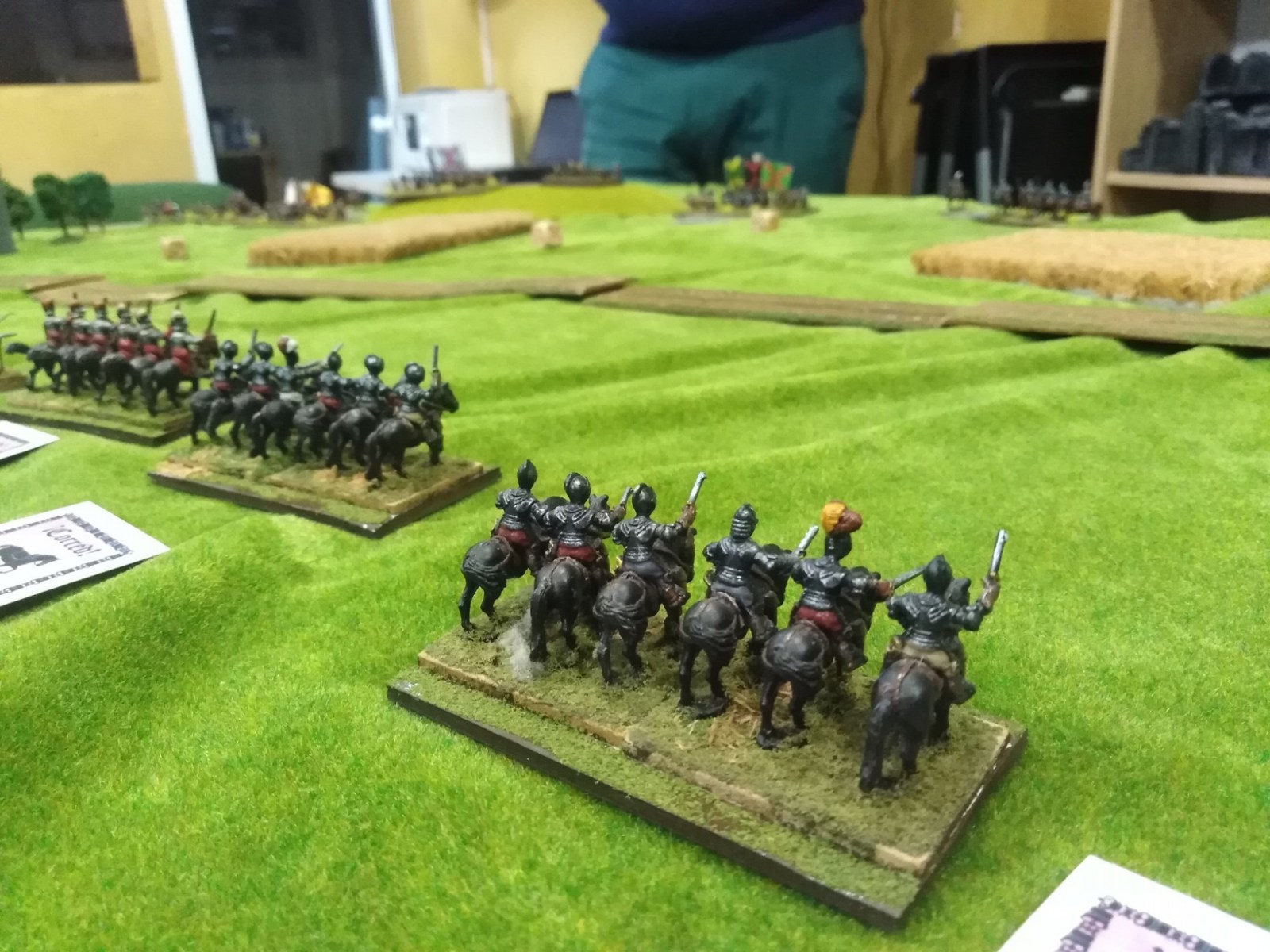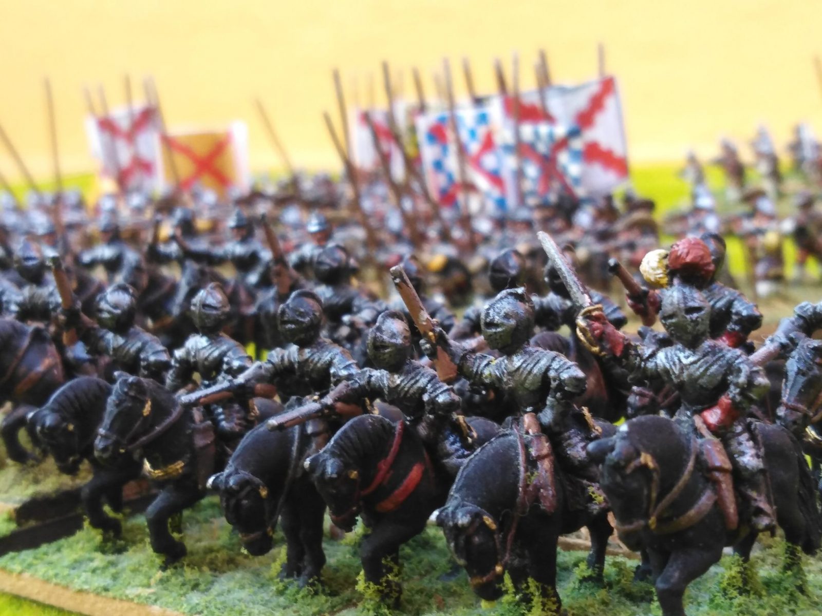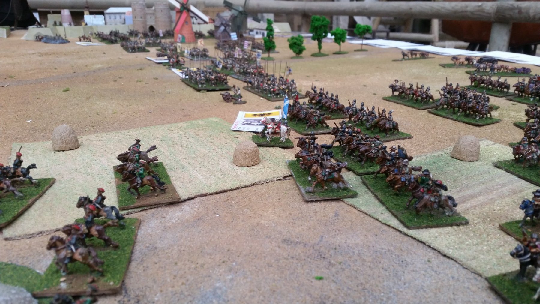 La cavalerie de Pappenheim arrive sur le champ de bataille (par le côté de table du joueur impérial) vers midi (quelques régiments de cavalerie sont déjà arrivés et en ligne). L’infanterie de Pappenheim n’arrivant sur le champ de bataille qu’à la nuit tombée, elle n’est pas intégrée dans ce scénario*.