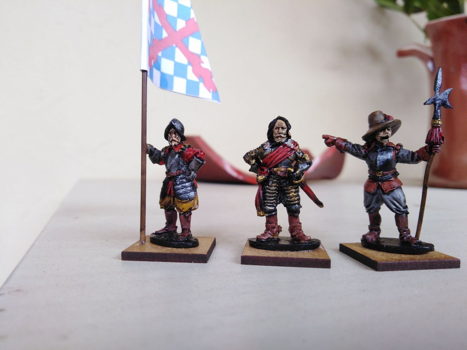 3 drapeaux de compagnies du régiment Mitschefall, dissout en septembre 1632 et amalgamé avec le régiment Bürt ci-dessus.