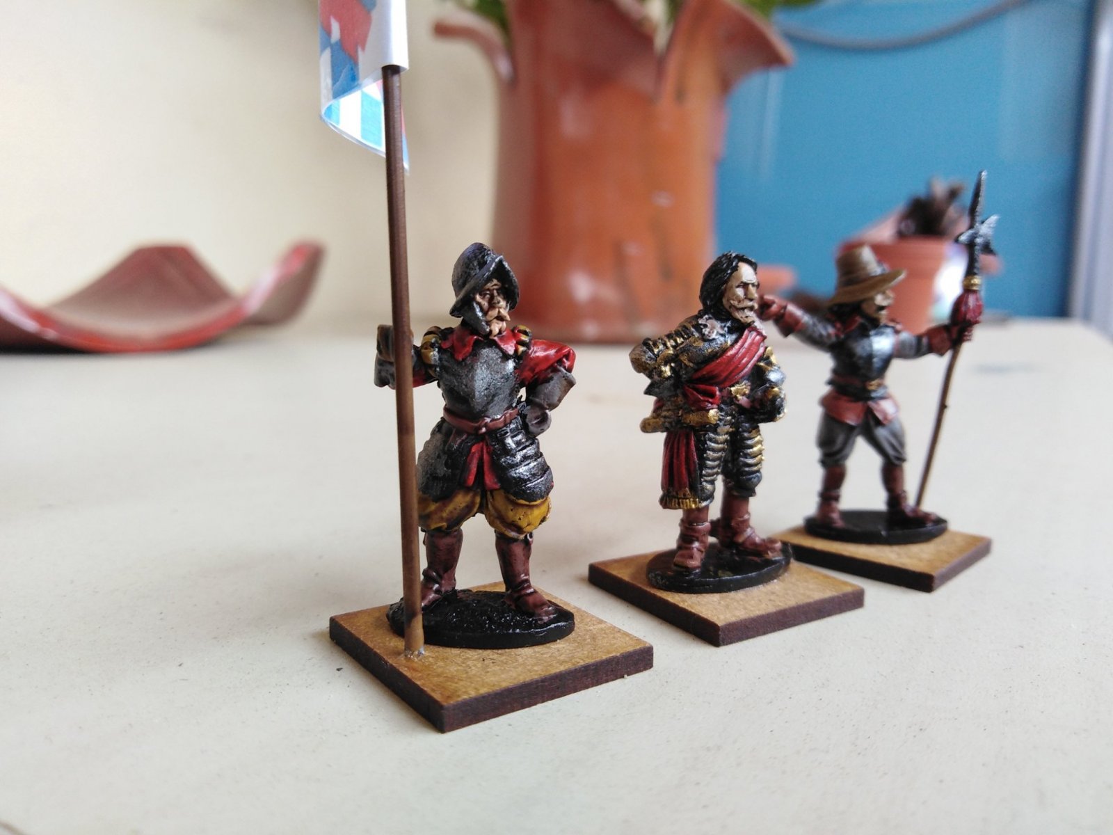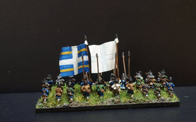 Et voici quelques drapeaux de régiments d’infanterie suédois pour simuler la bataille de Lützen.