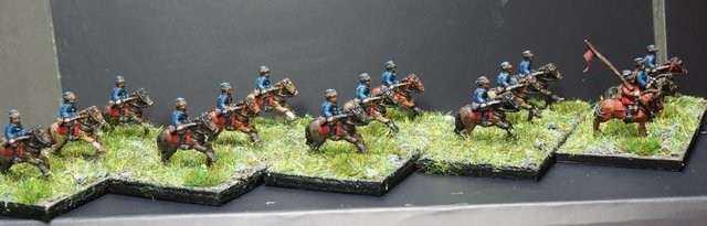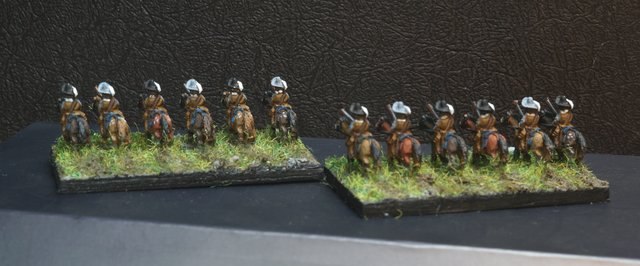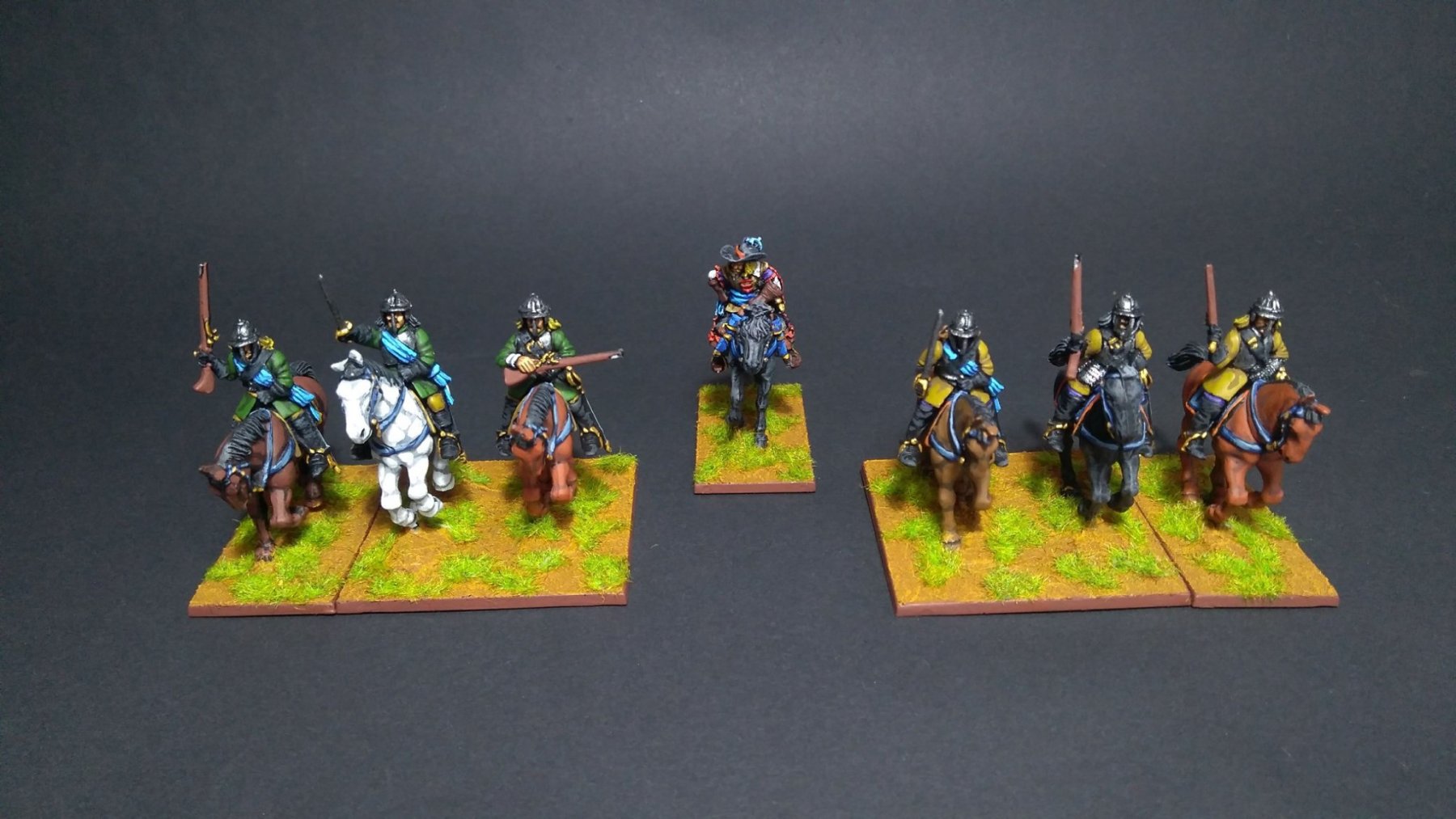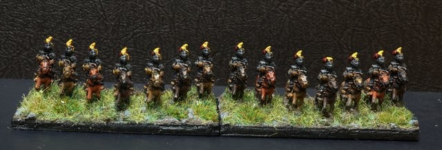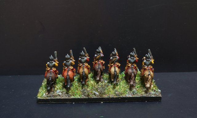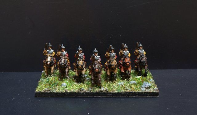 Seconde ligne (de droite à gauche) : duc Wilhelm Leib CR (120), Goldstein CR (150), Bulach CR (120), Beckermann CR (150), Hessois 4 CR (380), G. Uslar-hessois CR (160).